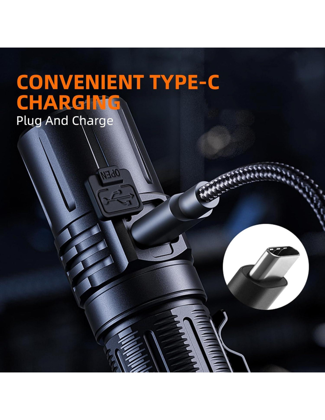 - Linterna Táctica de Larga Duración: Gran capacidad de batería de 3400 mAh hace que la linterna LED tenga una larga duración. Puede funcionar 6 horas en modo alto, y más de 192 horas en modo luna. Nunca necesitará preocuparse por quedarse sin energía si necesita trabajar de inmediato por la noche.