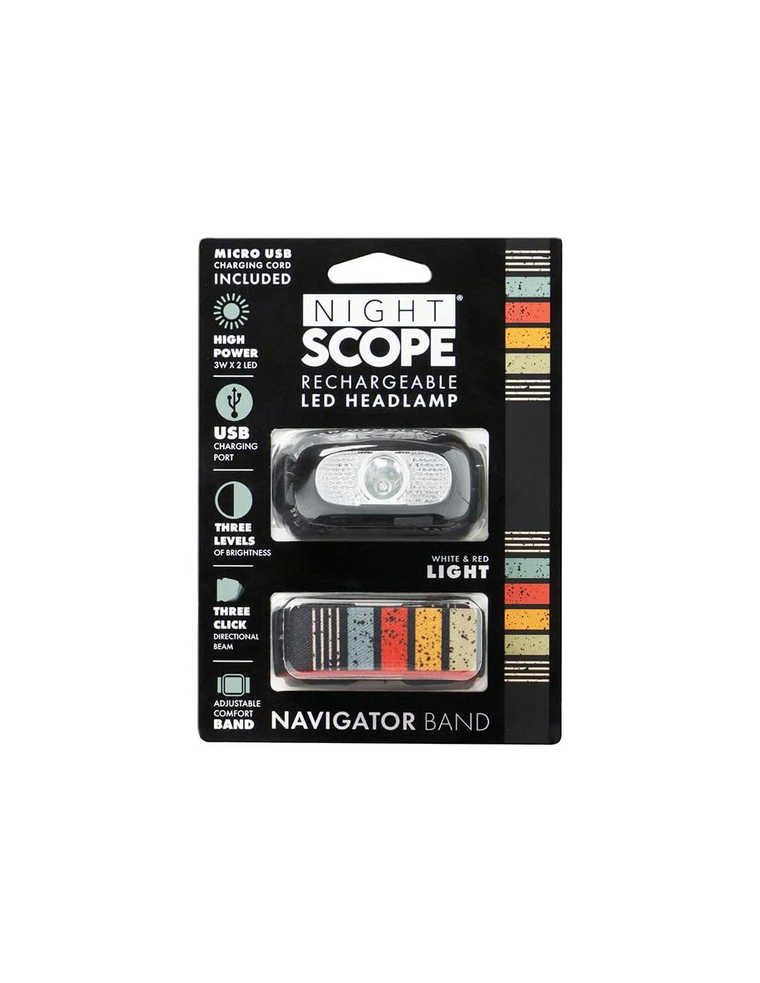 - CARACTERÍSTICAS: La linterna frontal recargable Night Scope es el accesorio LED de primera en la nación. Cuenta con alta potencia (3W x 2 LED), puerto de carga USB, tres niveles de brillo y tres haces direccionales. Cinco modos de luz: brillante, medio, bajo, rojo y rojo intermitente. Puedes alternar entre estas luces y ajustar el brillo según tus necesidades.