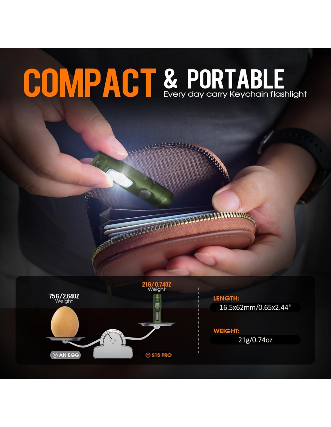 - Iluminación Extremadamente Brillante: La TUENGE S15Pro tiene una salida máxima de 750 lúmenes y viene en 6 modos de iluminación (Luz de luna, baja, media, alta), lámpara de flash y SOS para emergencias, con función de memoria