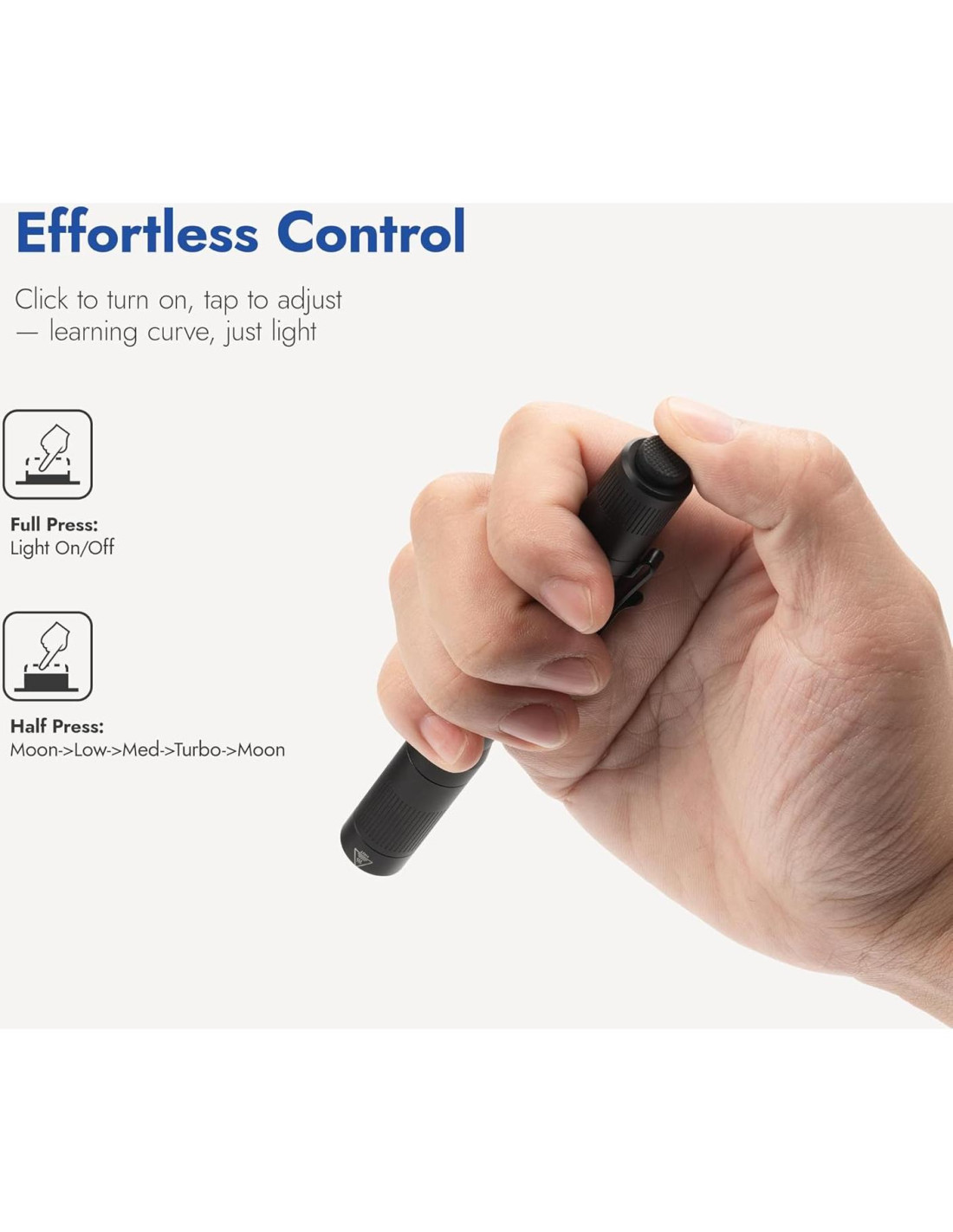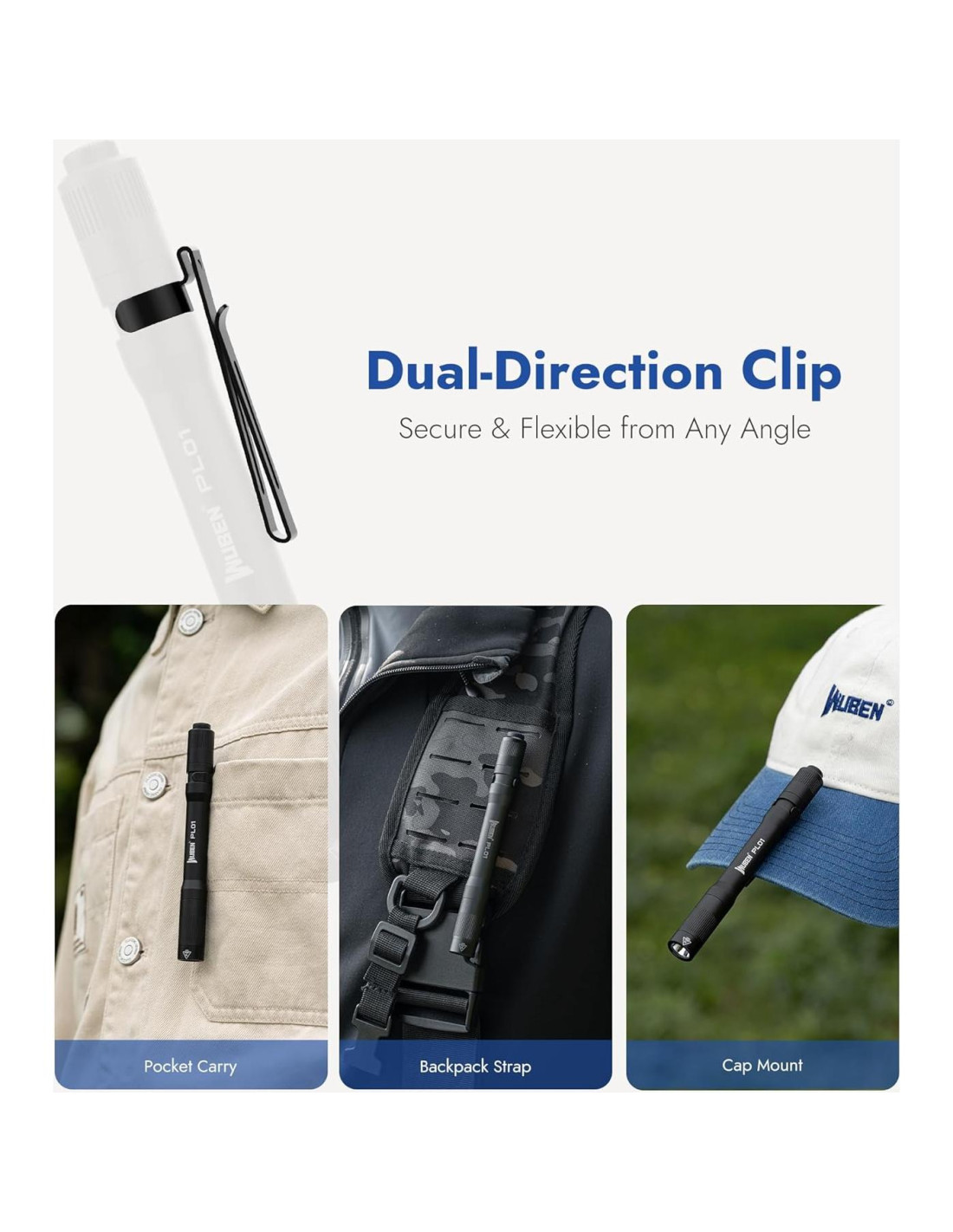 - WUBEN PL01 LINTERNA DE 650 LÚMENES: Esta linterna de bolígrafo compacta ofrece 4 modos. (Alto a Luna: 650LM/150LM/50LM/1LM), Equipado con perlas LED de alto rendimiento, libera instantáneamente 650 lúmenes ultra-brillantes que proporcionan una potente iluminación para búsquedas a corta distancia; Mientras que el modo de luz de luna de 1LM dura 125 horas para respaldo a largo plazo.