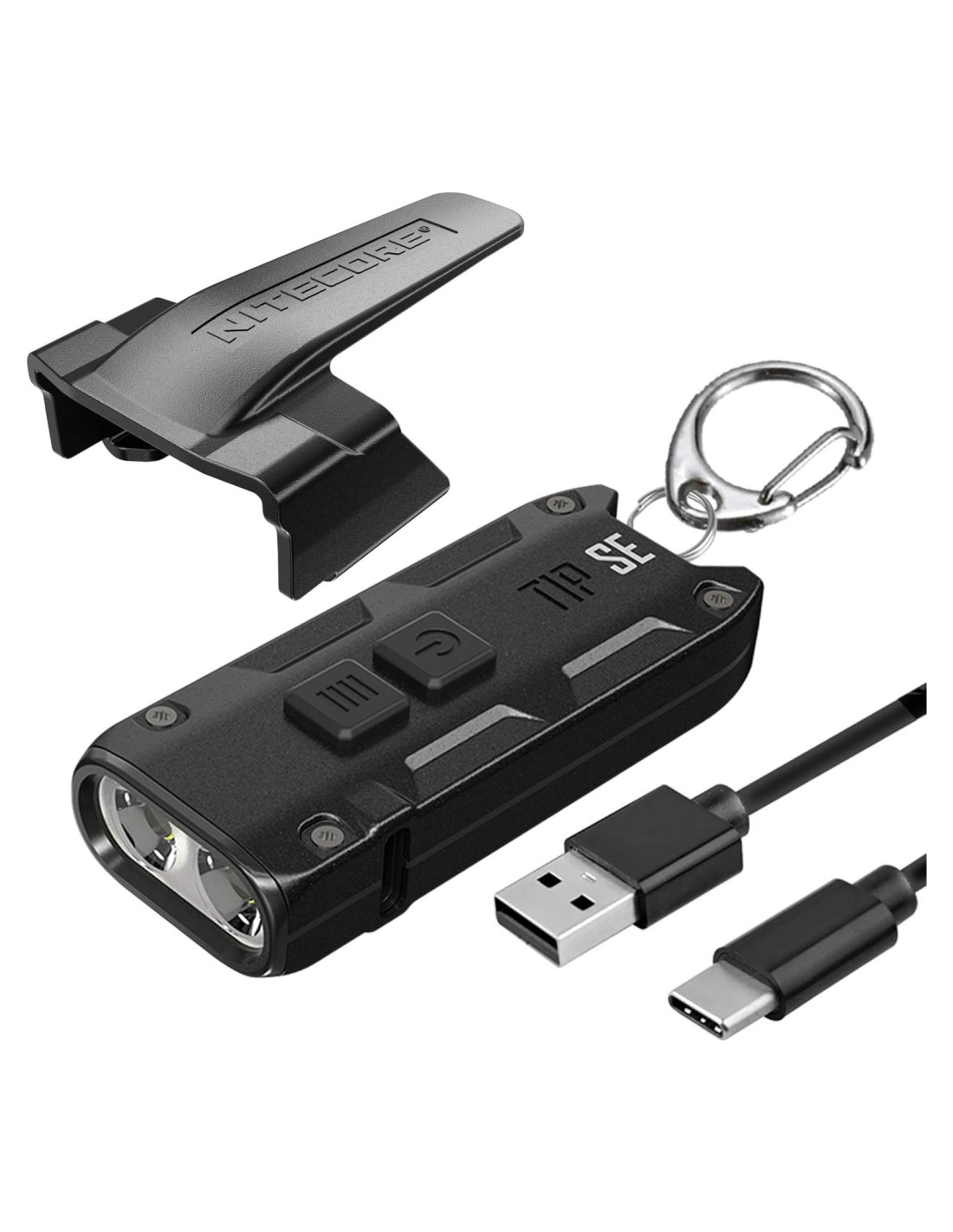 - PAQUETE NITECORE TIP SE - incluidos están Nitecore Tip SE (negro), 2 anillos de llavero, gancho de llavero, clip y un cable de carga USB-C.