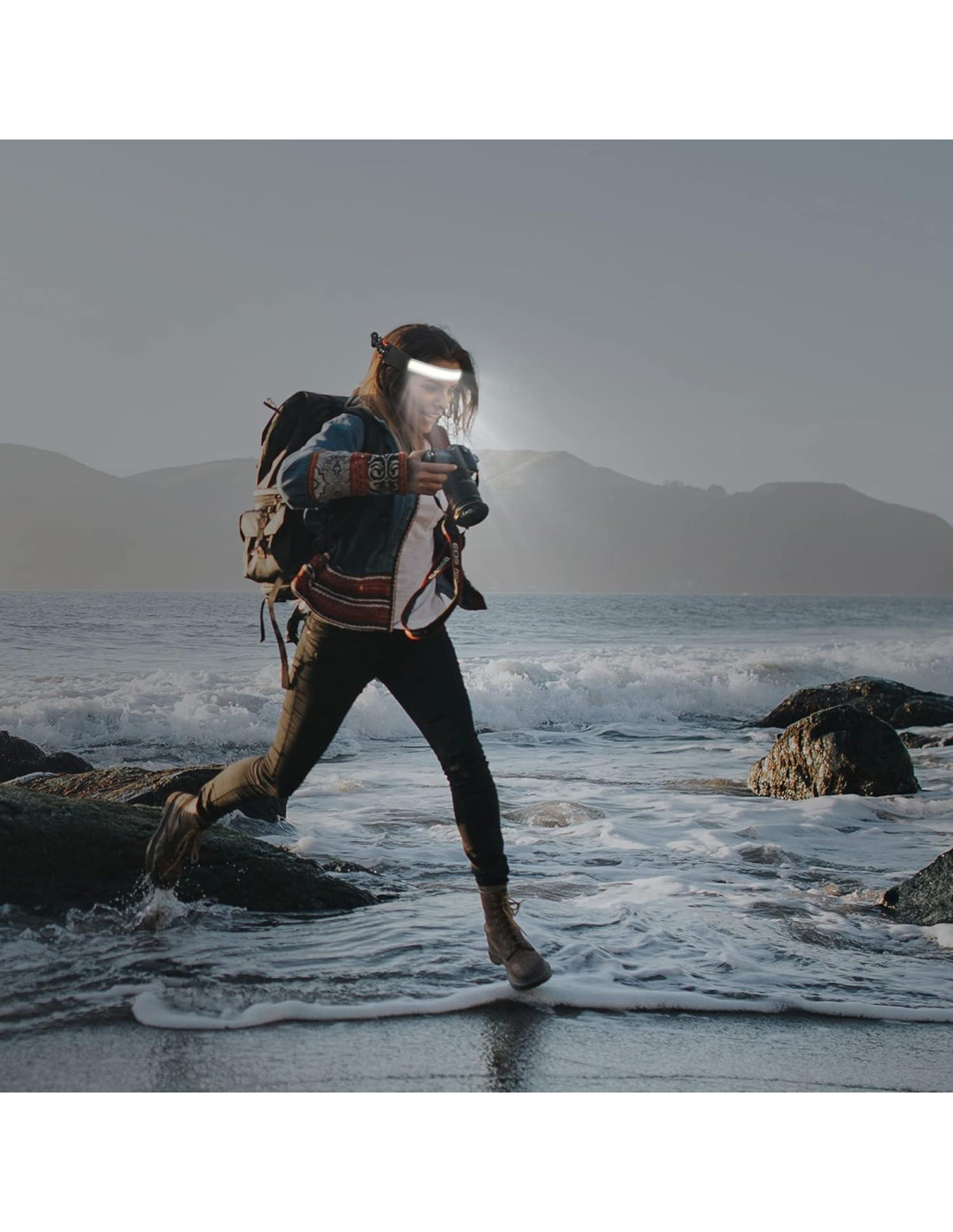 - Ángulo Amplio de 230: La linterna frontal LED ajustable proporciona iluminación de área amplia de 230. El diseño es amigable para el usuario, no tendrás que mover la linterna frontal para iluminar el área deseada, adecuada para correr y andar en bicicleta de noche.
