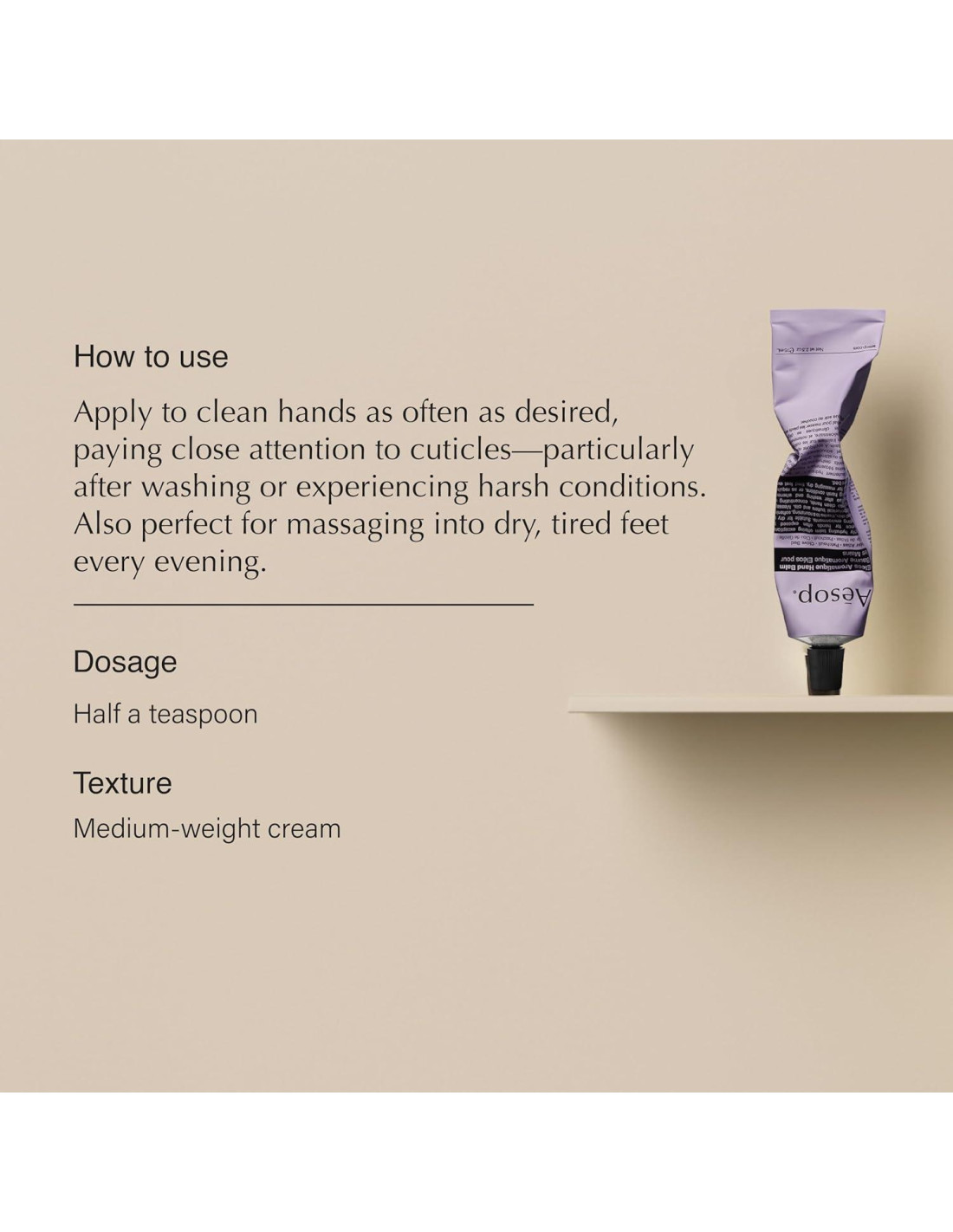 Aesop Reverence Aromatique Jabón de Manos: Una mezcla aromática poco ortodoxa con extractos botánicos y Pómez finamente molido, para limpiar suavemente, exfoliar y dejar las manos suaves, purificadas y refrescadas. Aesop Eleos Aeromatique Bálsamo de Manos: Un bálsamo intensamente hidratante enriquecido con mantecas y aceites botánicos que suavizan la piel. Ideal para manos secas o estresadas por el clima.