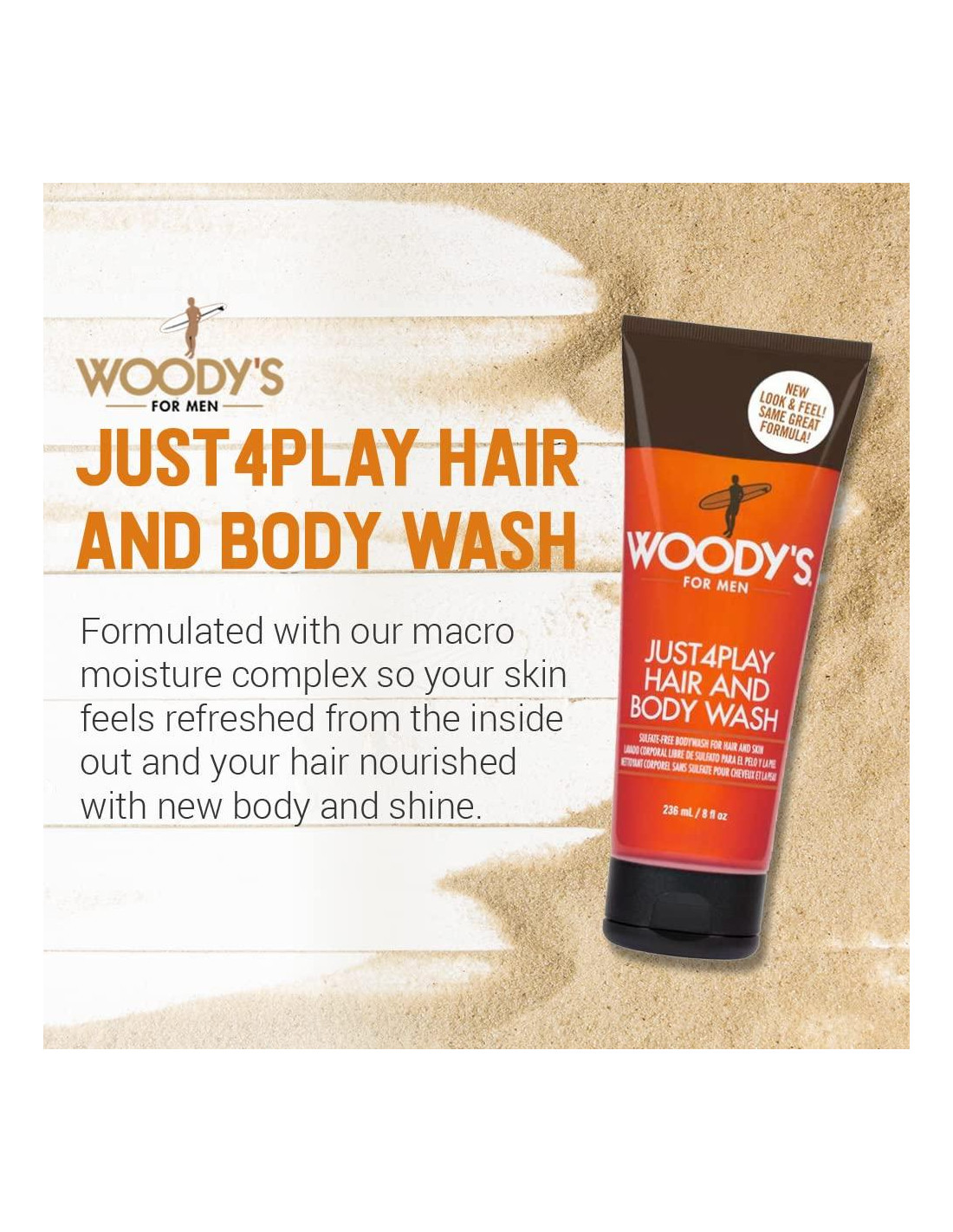Elimina la piel seca e irritada y el cabello opaco y sin vida con la rica y cremosa espuma del Gel de Ducha Woody's Just4Play. Formulado con nuestro complejo de macro humedad para que tu piel se sienta renovada desde adentro hacia afuera y tu cabello nutrido con nuevo cuerpo y brillo.