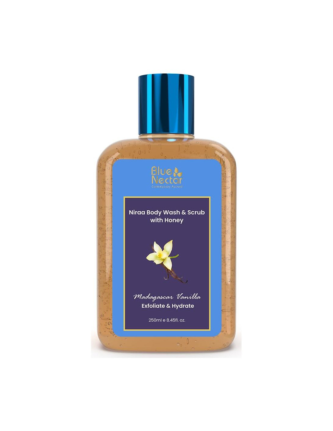 Experimenta la transformación definitiva de la piel con el Jabón y Exfoliante Corporal 2 en 1 de Blue Nectar: una solución suave y efectiva para la piel áspera y con bultos, enriquecida con el atractivo aromático de la Vainilla de Madagascar. La Miel Cruda contiene vitaminas como B1, B2, C, etc. que hidratan profundamente la piel y le dan un toque encantador. El Polvo de Cáscara de Nuez elimina suavemente las impurezas de la piel y las células superficiales opacas, dejando la piel instantáneamente suave y radiante. La Aloe Vera ayuda a que la piel se sienta hidratada, rellena, suave y juvenil. La Tuna ayuda a restaurar la elasticidad, iluminar tu piel y reducir la sequedad. ¿Es el Jabón Corporal Blue Nectar adecuado para todos los tipos de piel? Sí, el Jabón Corporal Blue Nectar es adecuado para todos los tipos de piel, ya que contiene ingredientes 100% naturales como Miel y Aloe Vera que ayudan a darte una piel clara de forma natural. ¿Este Exfoliante Corporal también funciona como Jabón Corporal? Sí, funciona como un jabón corporal y exfoliante, también puedes usarlo como un exfoliante facial. ¿Cómo uso el Jabón Corporal Blue Nectar? Para usar el Jabón Corporal Blue Nectar, moja tu cuerpo con agua, luego vierte una pequeña cantidad del jabón corporal sobre una esponja o tu palma. Emulsiona el producto y masajea suavemente sobre tu piel en movimientos circulares. Enjuaga bien con agua después. ¿Se puede usar el Exfoliante Blue Nectar en la cara? Sí, puedes usar el exfoliante corporal Blue Nectar como limpiador facial también. Tiene finos gránulos de cáscara de nuez que son suaves para la piel. ¿Pueden usar este Jabón y Exfoliante Blue Nectar tanto mujeres como hombres? Sí, el Jabón y Exfoliante Corporal de Vainilla de Madagascar es adecuado para que lo usen tanto mujeres como hombres. El agua es el néctar de la vida de Blue Nectar. #SalvaElAzul es una iniciativa de Blue Nectar para salvar y restaurar el agua subterránea a través de la recolección de agua de lluvia.