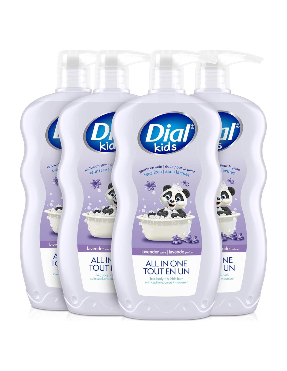 Dial Niños 3-en-1 Cuerpo, Cabello, y Baño de Burbujas, Fórmula Todo-en-Uno, Suave para la Piel, Sin Lagrimas, Hipoalergénico, Bueno para Todos los Tipos de Piel, Aroma a Lavanda, 710 ml (Paquete de 4), Edades 2+