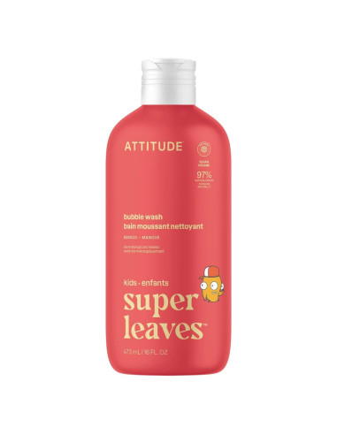 Haz que la hora del baño sea un deleite con el lavado de burbujas vegano - mango. Formulado con un 97.8% de ingredientes de origen natural* incluyendo extracto de hoja de arándano calmante, su espuma cremosa convierte la hora del baño en un momento divertido. Su fórmula dermatológicamente probada y VERIFICADA por EWG es suave para la delicada piel de tu hijo. Te encantará su fragancia de mango ácido que combina pulpa de albaricoque con dulce y deliciosa vainilla. * Según ISO 1628.