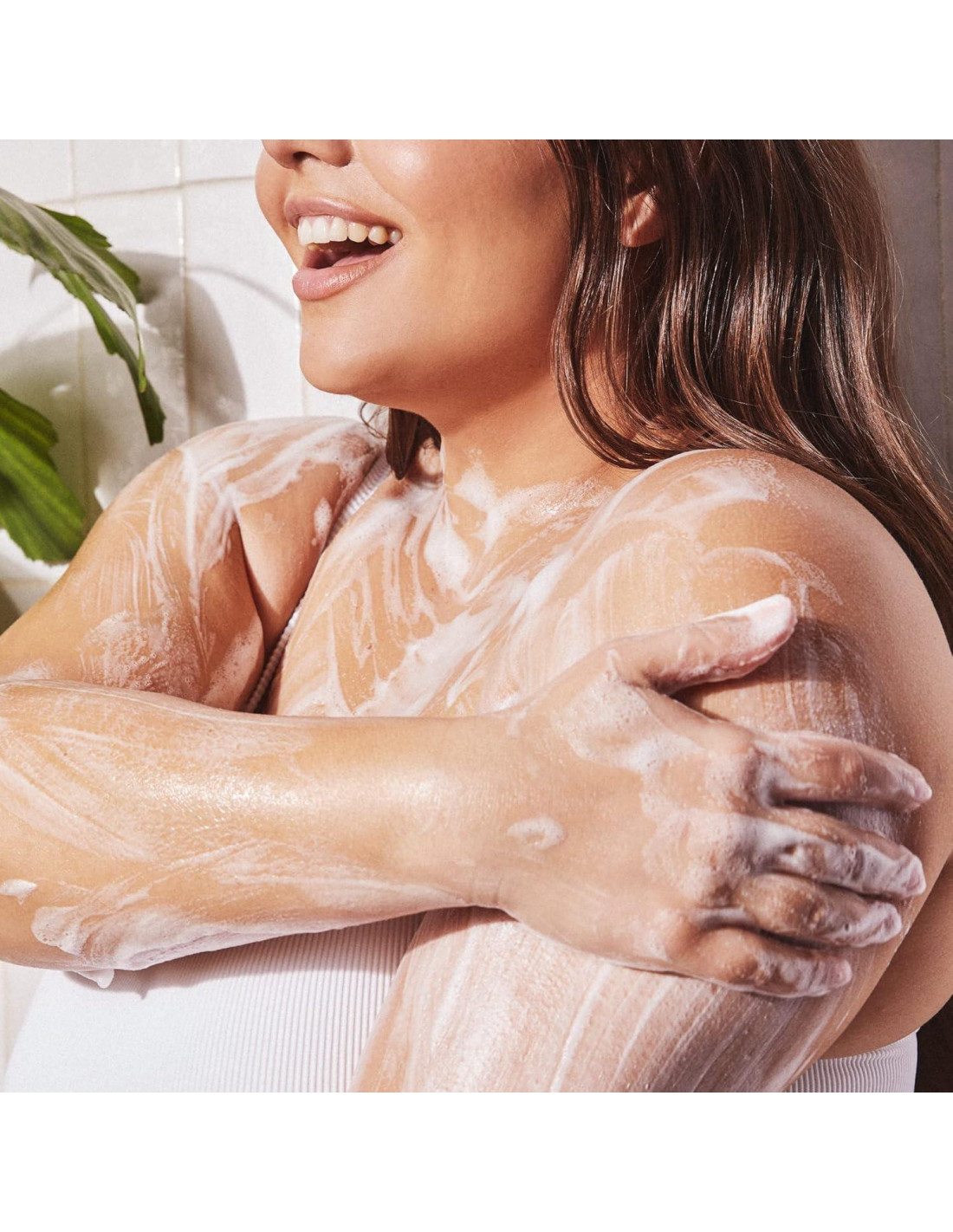 - EXPRIME, HAZ ESPUMA, ENJUAGA: Usa un paño o esponja para más espuma. Lleva tu cuidado corporal al siguiente nivel con nuestra Leche Corporal de Coco y Exfoliante de Coco para la mejor línea de jabones corporales Kopari.