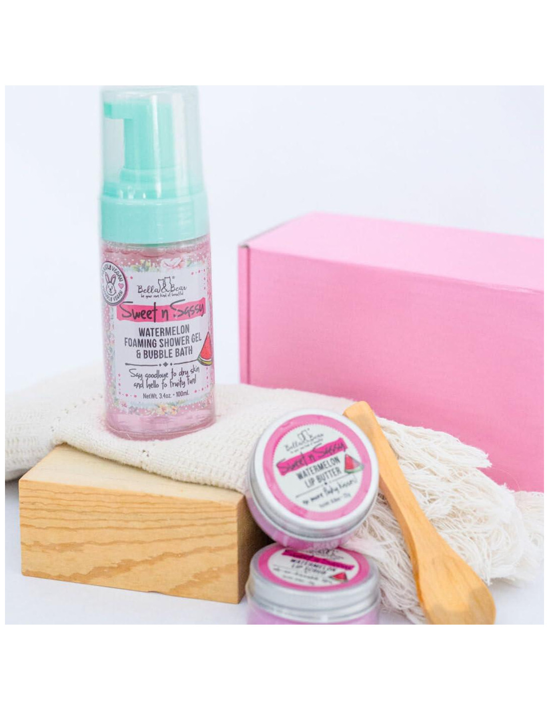 Refresca tu rutina de ducha con nuestro Gel de Ducha Espumoso Dulce y Travieso de Sandía y Baño de Burbujas! Su aroma juguetón y fórmula espumosa te dejarán sintiéndote renovado y listo para enfrentar el día (o la noche). ¡Di adiós a las duchas aburridas y hola a una experiencia dulce y traviesa! Este delicioso producto 2 en 1 combina un refrescante aroma a sandía con una rica fórmula espumosa que dejará tu piel sintiéndose limpia e hidratada. ¡Cámbialo agregando producto al agua corriente en la bañera y pronto tendrás una bañera burbujeante! Perfecto para adultos y niños por igual.