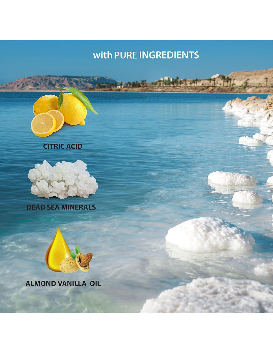 - Minerales Puros del Mar Muerto - Lleva los tesoros del Mar Muerto a la comodidad de tu hogar con este jabón corporal nutritivo. Está infusionado con aceite de almendra dulce real y los minerales del Mar Muerto que mantendrán la piel hidratada, fresca y humectada. ¡Ideal para todo tipo de piel, este también es un jabón líquido para piel seca!