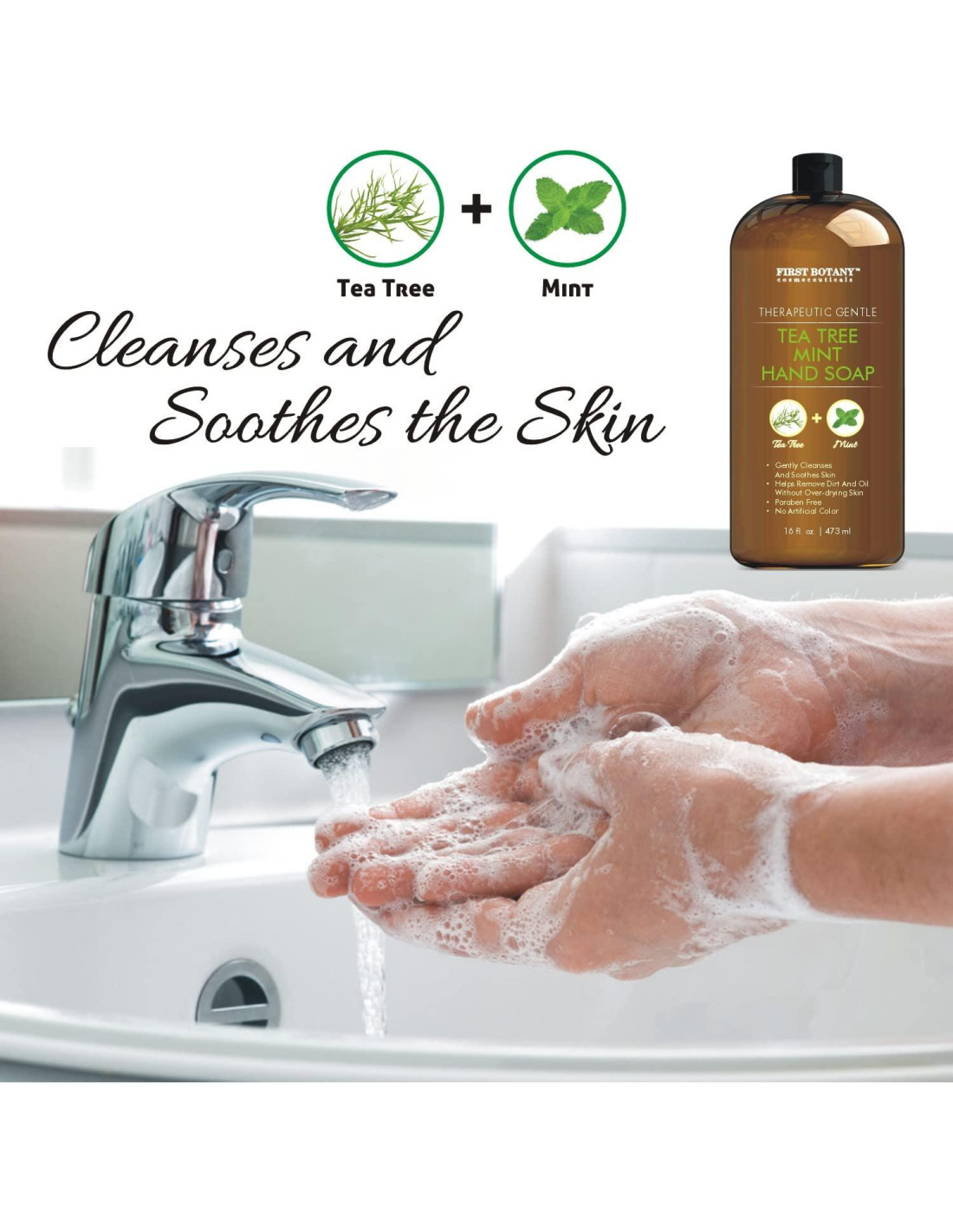 - JABÓN DE MANOS LIMPIADOR: Hecho con 100% aceite esencial de árbol de té puro y natural y aceite de menta, estos aceites son conocidos por sus propiedades y otros ingredientes beneficiosos para promover una piel suave, hidratada y limpia.