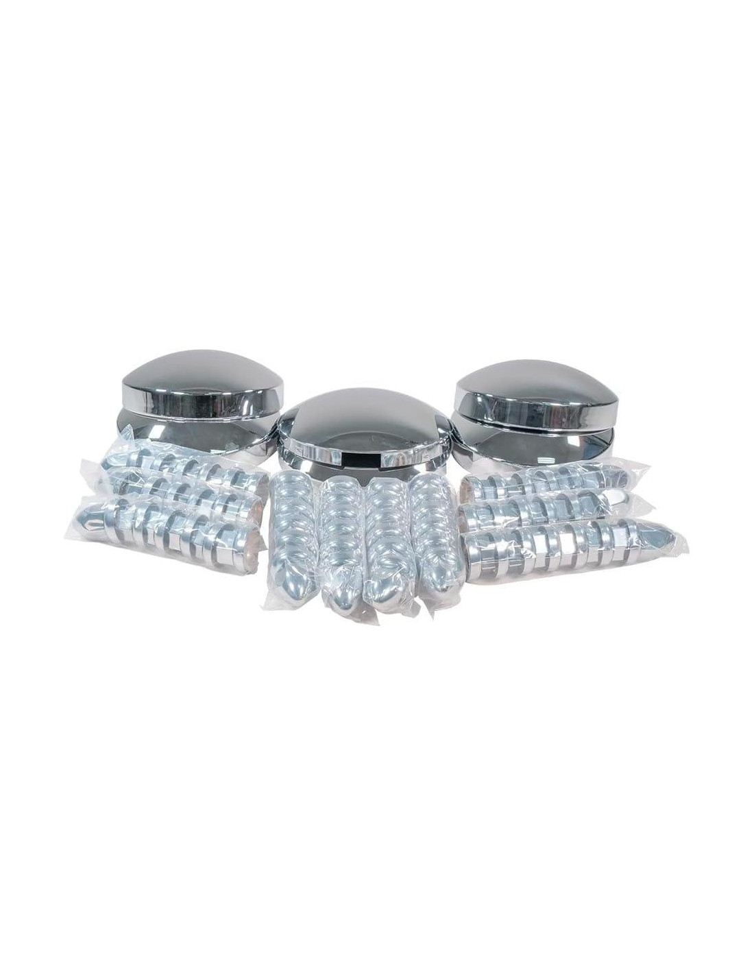 - Juego de Tuercas de Cromo de Acero y Tapas de Cubo Incluye: