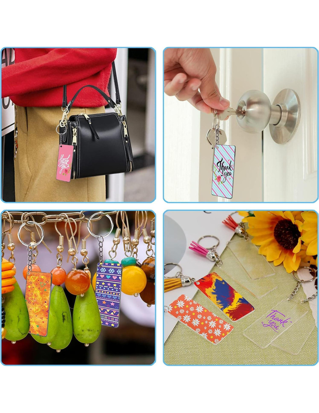 - Proyectos de bricolaje prácticos: el paquete incluye 40 piezas de blanks de llaveros acrílicos rectangulares (L x A: 7 x 3cm), 40 piezas de anillas para llaveros con cadena extensible y 40 piezas de anillos de salto, un total de 120 piezas de blanks de llaveros acrílicos rectangulares, cantidad abundante para tus proyectos de bricolaje y manualidades