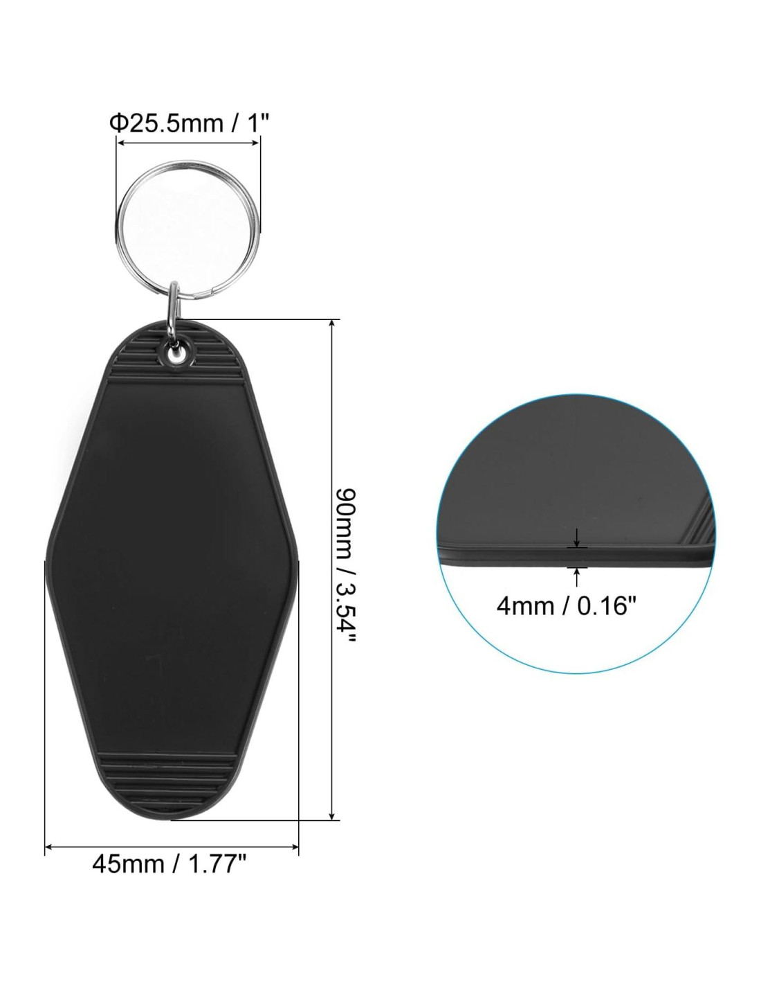 - Diámetro del anillo de llave: 25.5mm (1 pulgada); Tamaño total: 90x45x4mm (3.54x1.77x0.16 pulgada) (LxWxThk); Lista de paquete: 24 x Llavero de Motel en Blanco