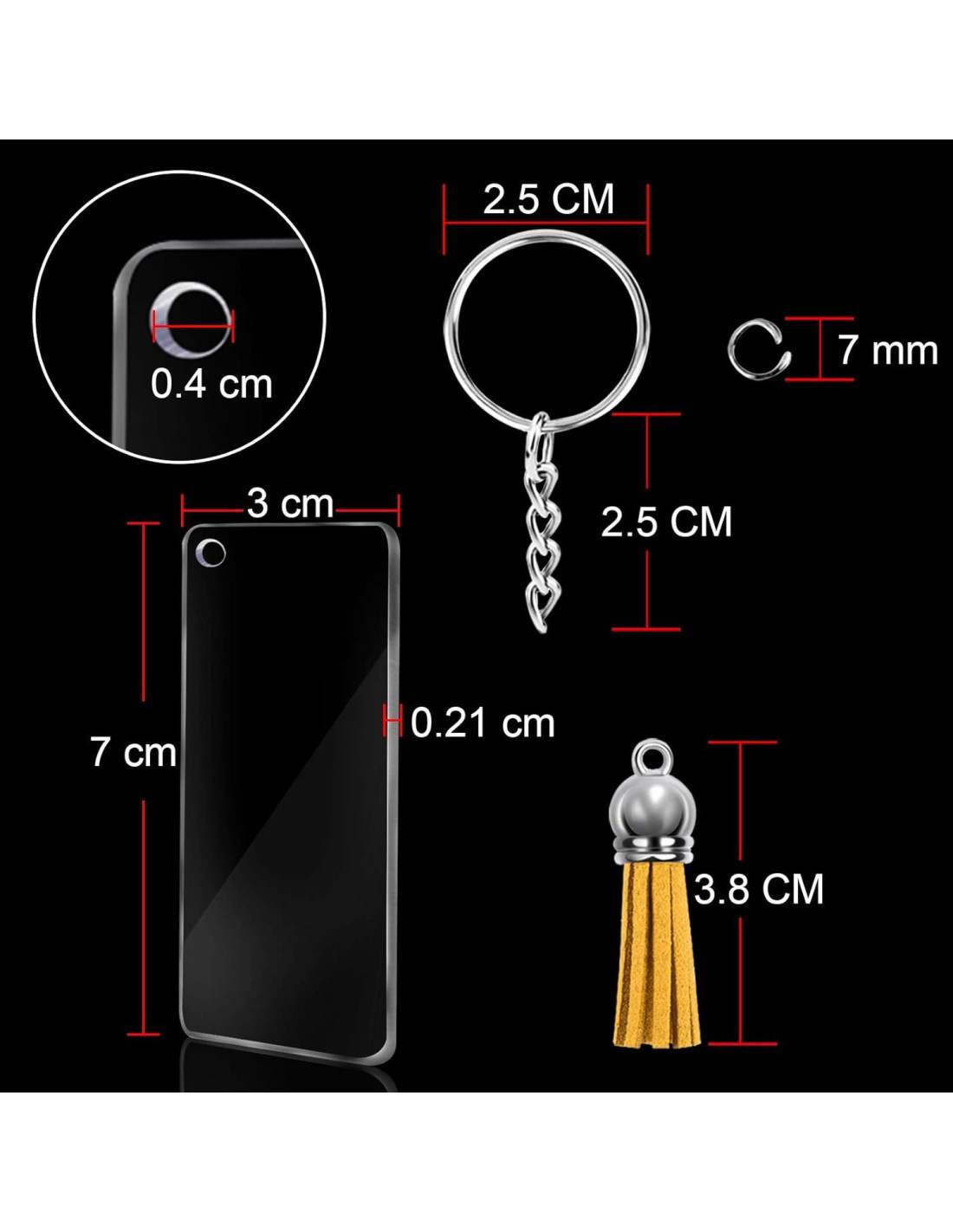 - Fácil de usar - los llaveros acrílicos rectangulares de Duufin están hechos de acrílico de calidad (0.21cm de grosor), preperforados con un agujero de 0.4cm de diámetro, puedes conectar fácilmente los llaveros con cadena, los acrílicos en blanco y las borlas