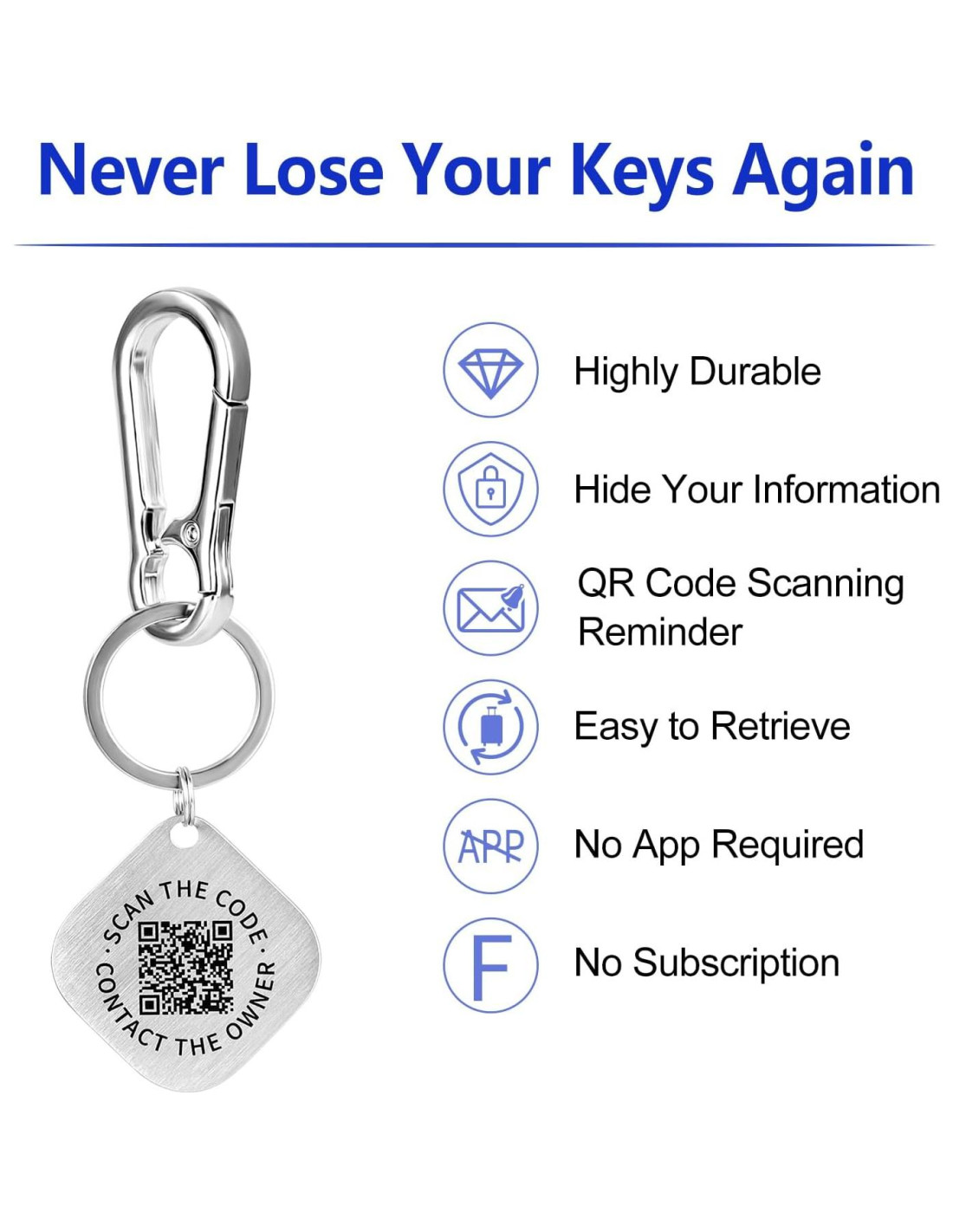 - Etiqueta de llavero QR inteligente 2 en 1 - Integra un mosquetón de aleación de zinc y una etiqueta QR de acero inoxidable; escanea para recuperar tu información sin exponer datos privados.
