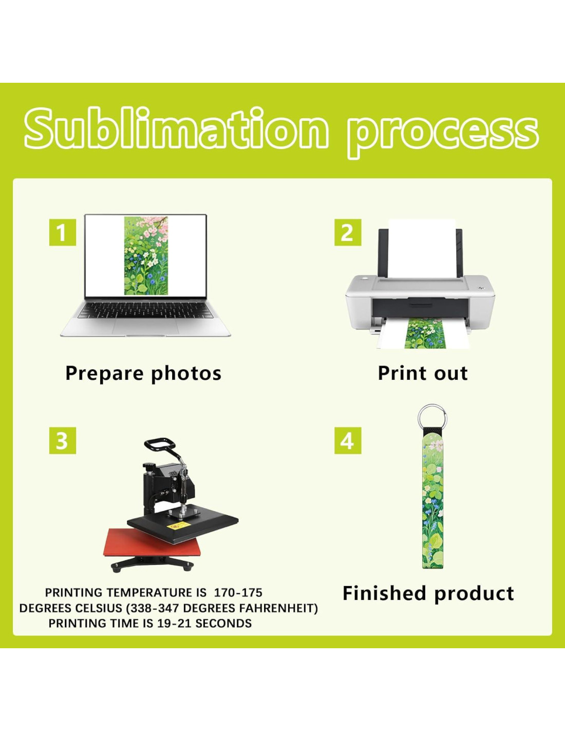 - [Proceso de Sublimación] : Los llaveros de muñequera de sublimación están hechos de neopreno, resistentes a la abrasión y robustos, la temperatura de impresión por sublimación es de 170-175 grados Celsius (338-347 grados Fahrenheit), y el tiempo de impresión por sublimación es de 19-21 segundos, (Nota: Temperatura de impresión excesiva causa que la banda de tela negra se derrita)