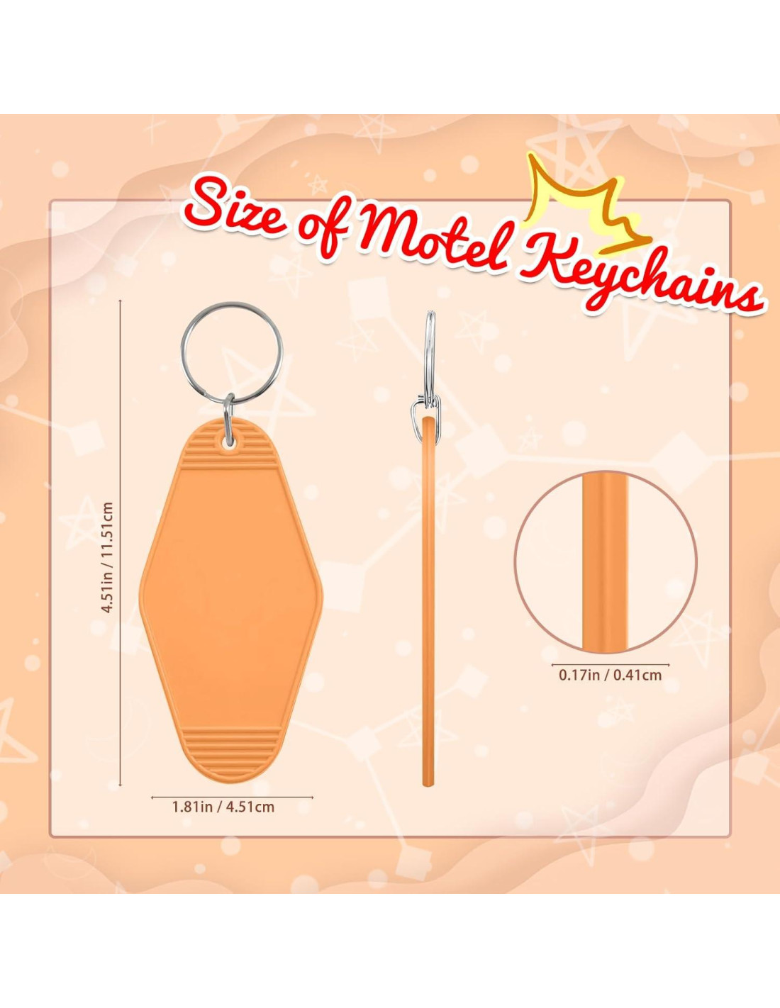 - [Tamaño Perfecto] El tamaño de los llaveros de motel de plástico en blanco es de aproximadamente 3.54 x 1.77 x 0.13 in (9 x 4.5 x 0.34 cm). Su tamaño compacto los hace fáciles de llevar en tu bolsa, mochila o bolsillo, sin agregar volumen. Los llaveros vienen en una variedad de colores para añadir un toque de color retro a tu diseño.