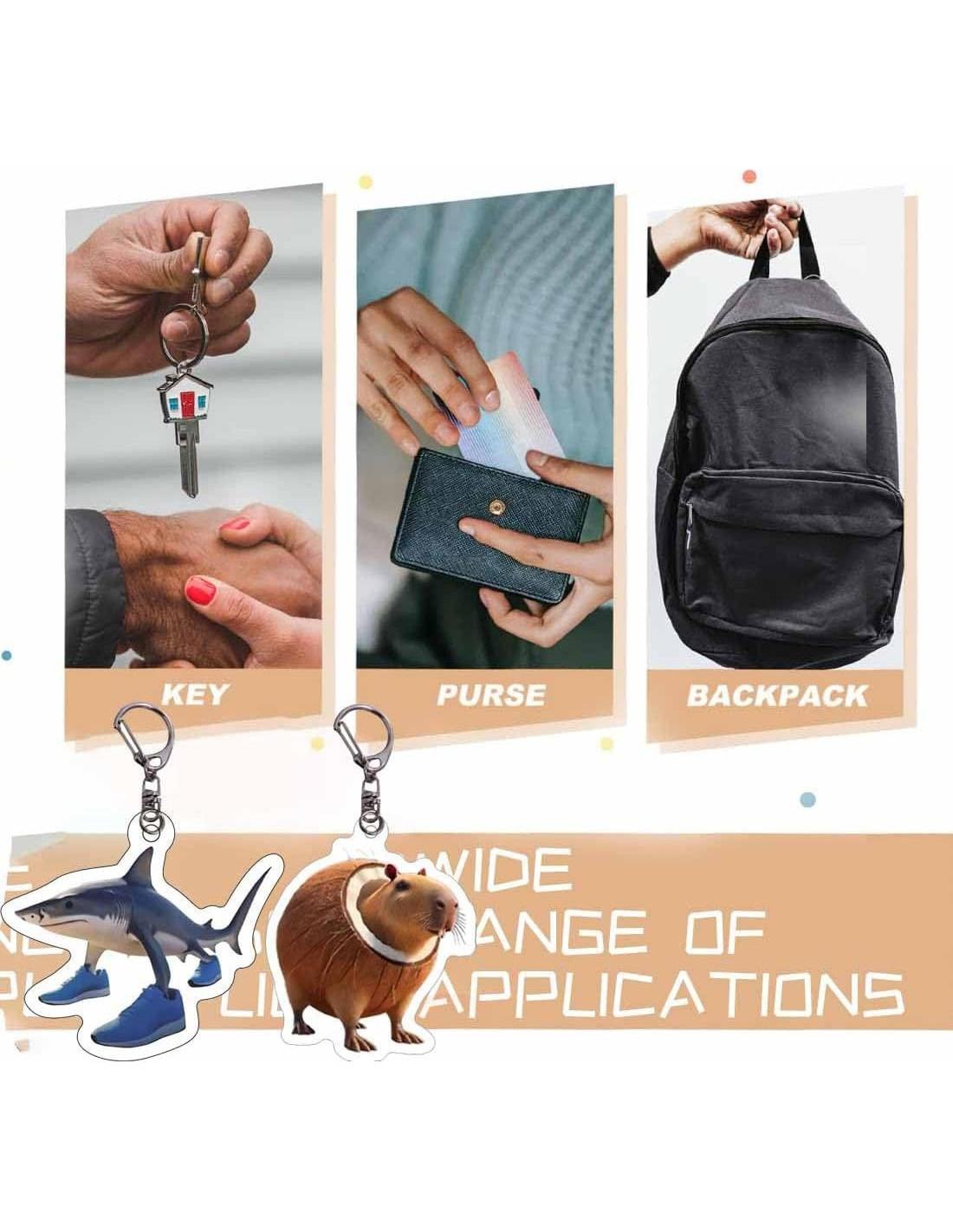 - Aplicación Multi-Escenario - Perfecto para decoración de interior de coche, accesorios de bolso de mujer, encantos de mochila, etiquetas de equipaje y llaveros. El tamaño compacto (2-3 pulgadas) con diseño ligero (5-8g cada uno) los hace ideales para varios escenarios de uso diario.