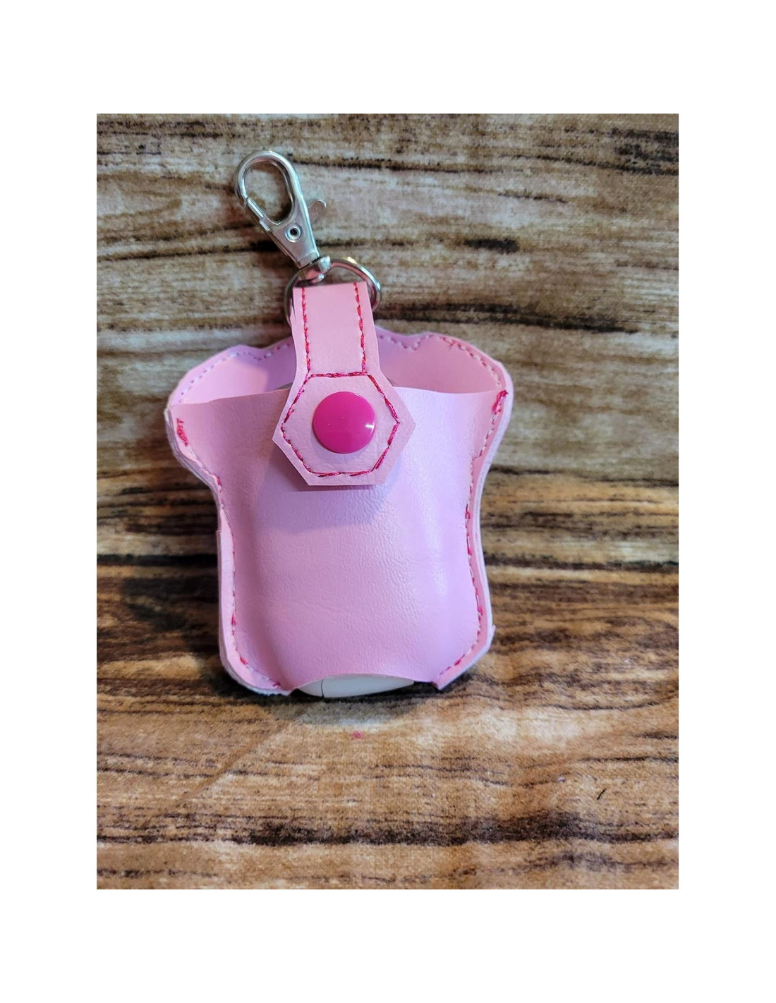 Este es un llavero de vinilo para sostener gel antibacterial (gel no incluido) que se sujeta a mochilas, bolsos, pañaleras, loncheras. El llavero es ideal para tenerlo siempre a mano cuando lo necesites. La mayoría de las botellas de 1 oz (29.57 ml) encajan en los soportes. El tamaño es aproximadamente 9 cm de alto y 7.62 cm de ancho. Dependiendo de la forma de la botella, el soporte puede curvarse alrededor de la botella.