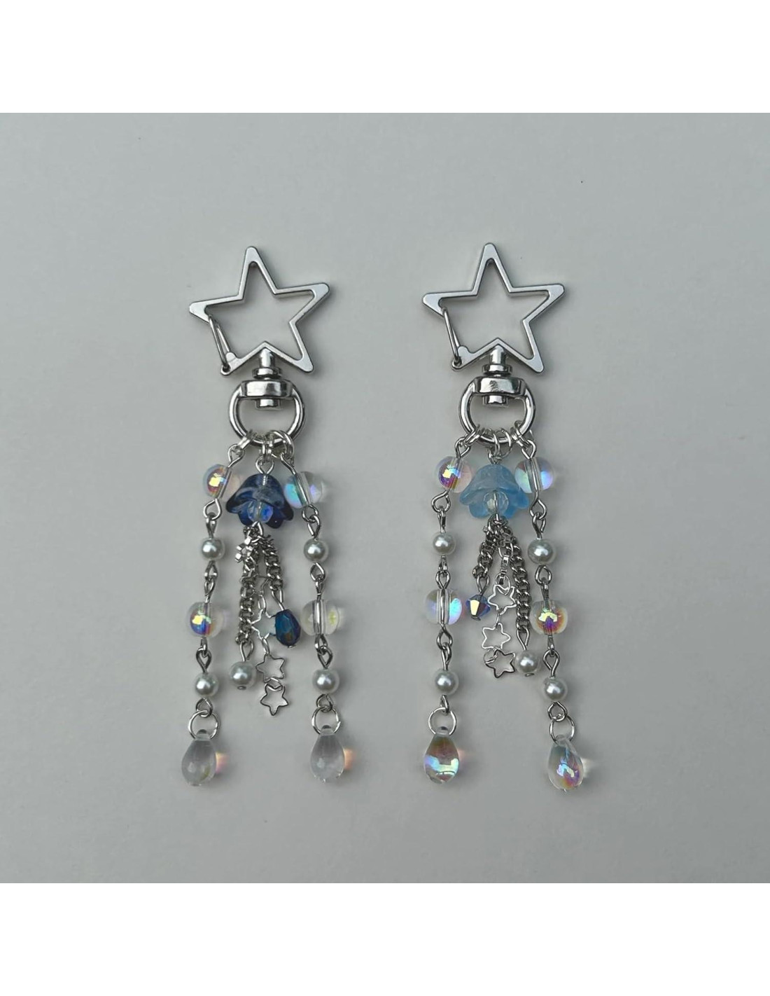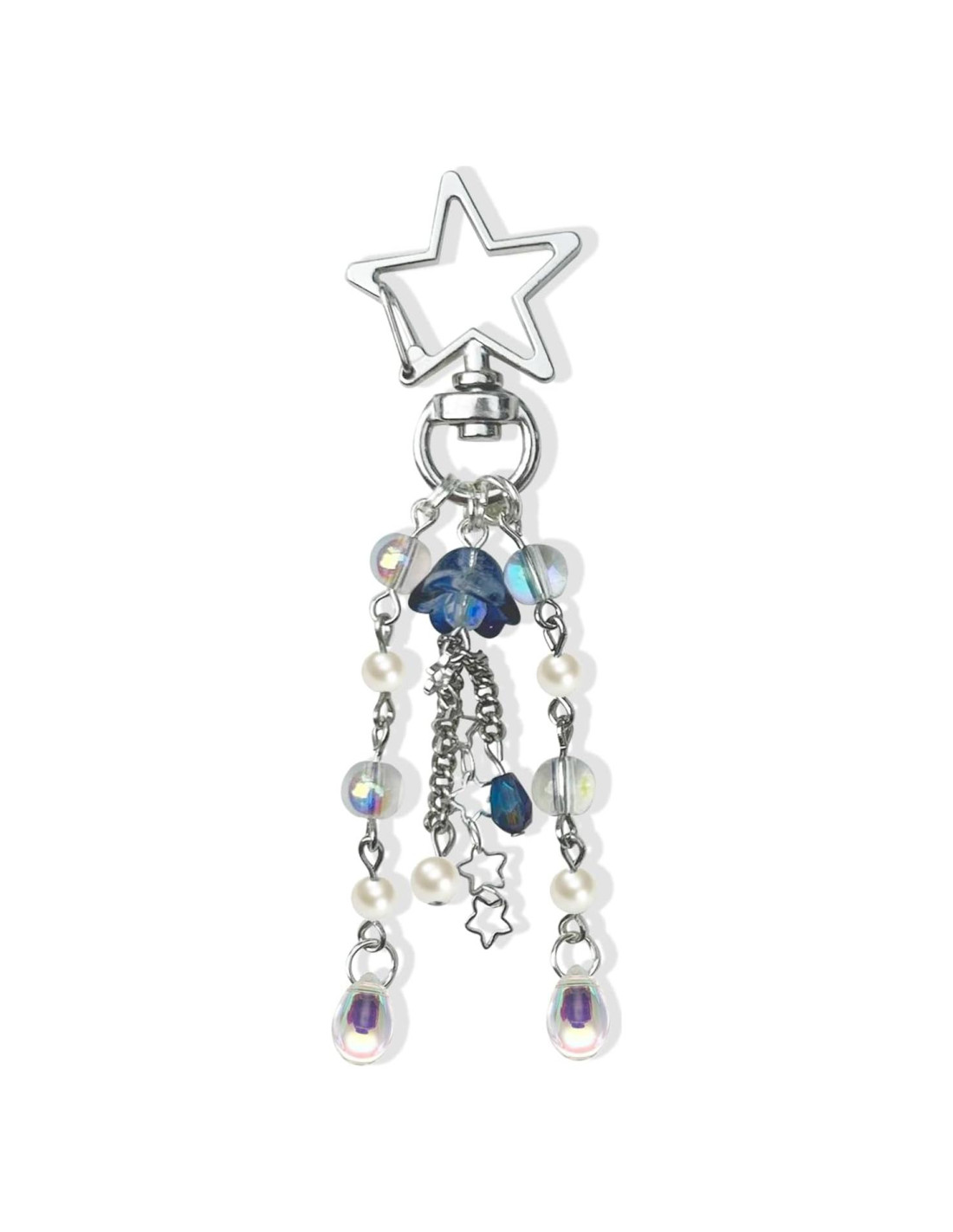 - Este llavero de medusa se puede adjuntar a cualquier cosa que desees tener un pedazo del océano! Está hecho de cuentas de vidrio, perlas de imitación, charms de metal, etc.