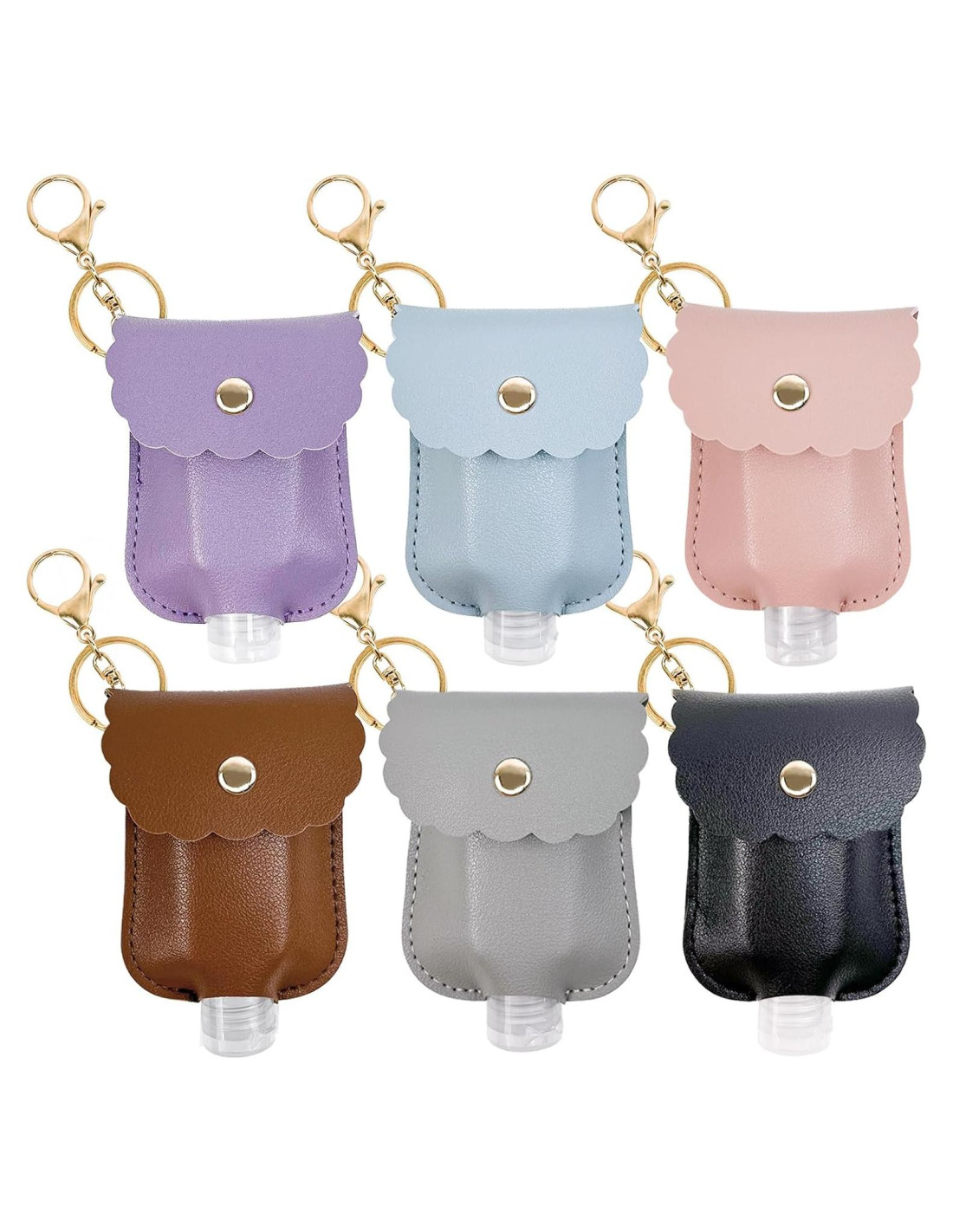 - Paquete Incluye: 6pcs llaveros de botella de desinfectante de manos (gris, azul lago, negro, púrpura, rosa, marrón), cantidad suficiente para uso diario.