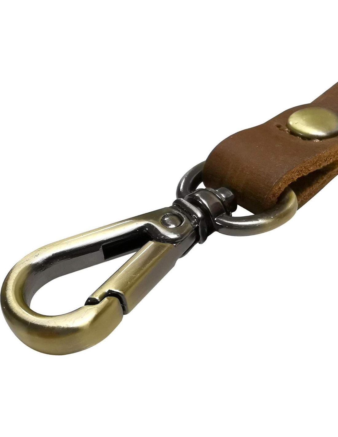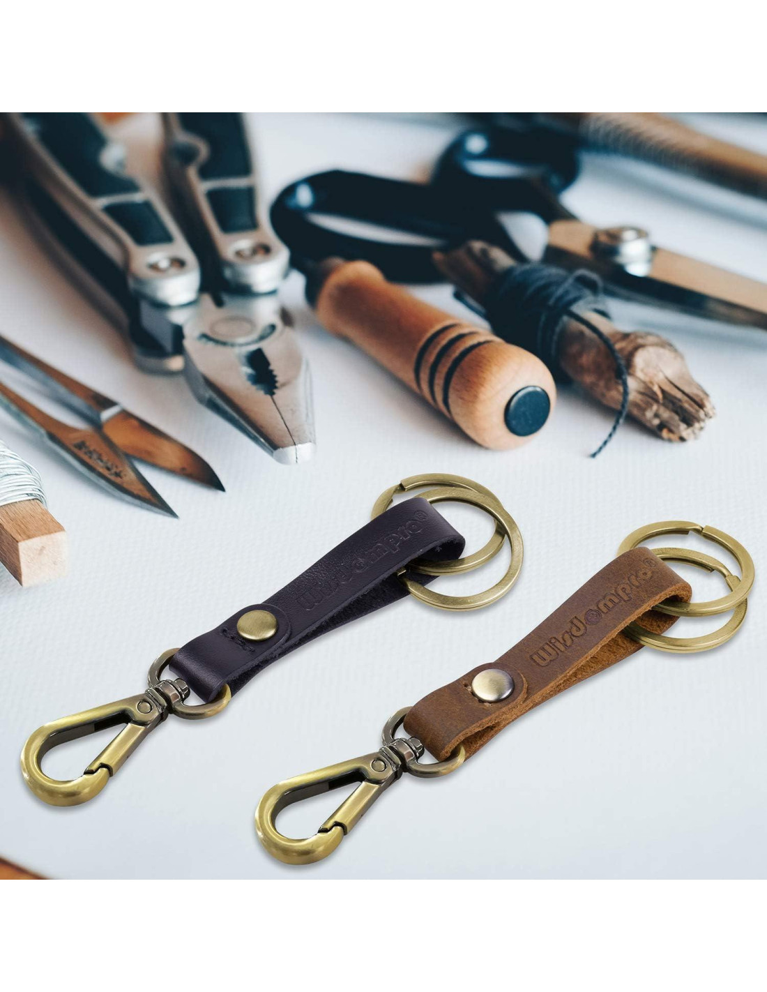 - Material Premium: Hecho de cuero genuino de alta calidad y clip de bucle de zinc bronce vintage y 2 llaveros.