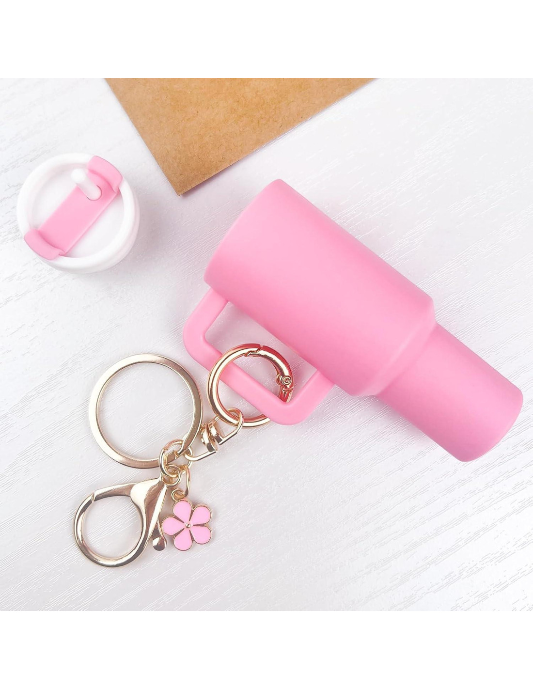 - Elegante y Versátil: Nuestros accesorios de llavero rosa para Stanley Cup son tanto prácticos como una mejora de moda para cualquier colección de accesorios. Con un diseño bonito y tamaño compacto, se pueden adjuntar fácilmente a mochilas, billeteras, bolsos, llaveros de coche, fundas de teléfono, loncheras, mochilas escolares y más.