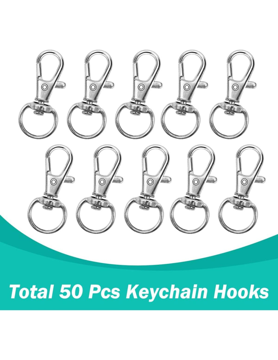 - [Tamaño Adecuado y Cantidad Suficiente] La longitud del gancho giratorio: 3.2cm/1.25pulgadas, ancho: 1.4cm/0.6pulgadas, diámetro del anillo en D: 0.9cm/0.3pulgadas; y diámetro exterior del anillo de llave: 2.5cm/1pulgada, diámetro interior: 2cm/0.8pulgadas. Además, el paquete incluye 50 pcs ganchos de langosta y 50 pcs anillos de llavero, es un conjunto suficientemente grande para que puedas hacer todo tipo de manualidades DIY como desees.