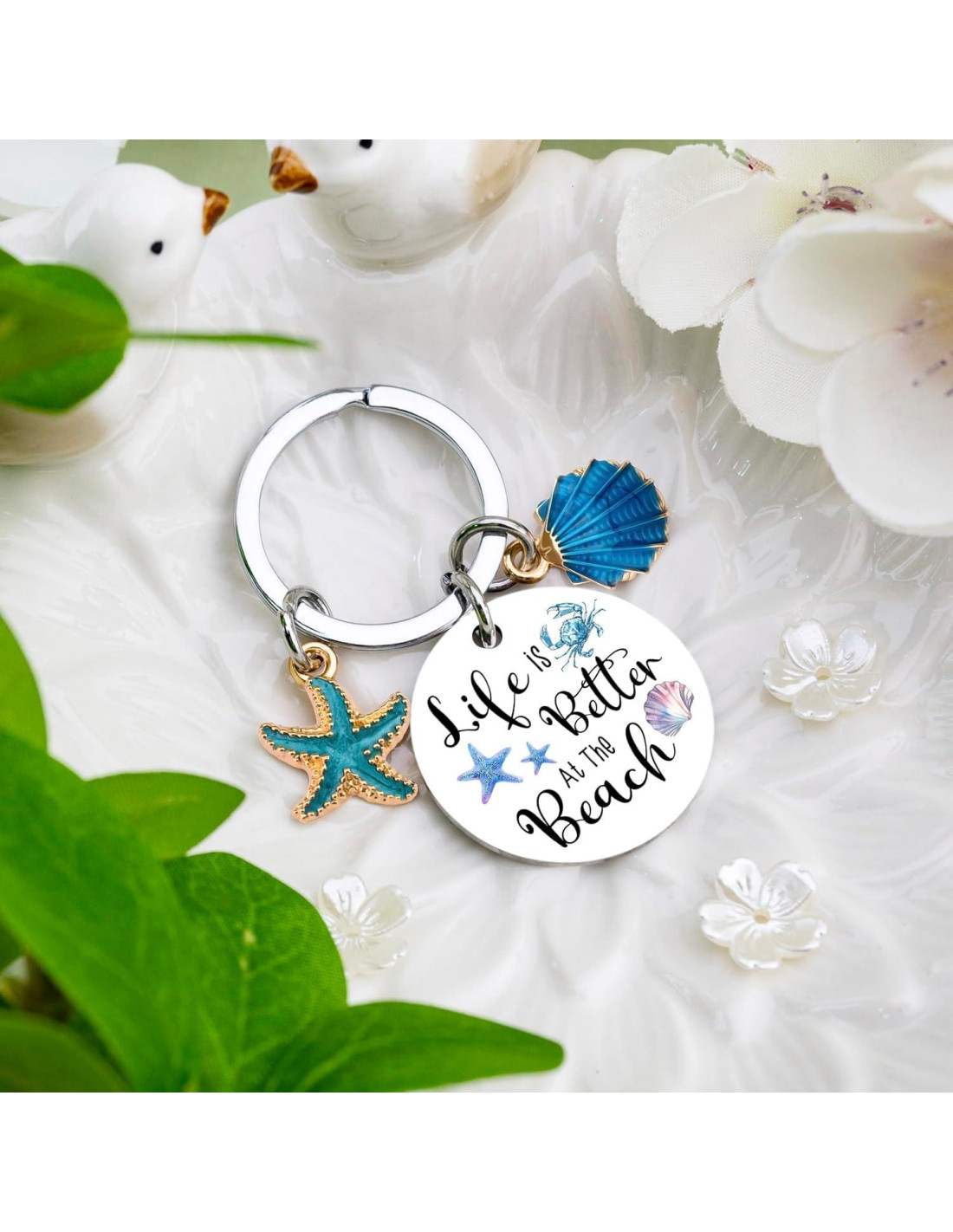 - Cosas de Playa para Mujeres: La frase en inglés "La Vida es Mejor en la Playa" está impresa en el llavero de playa, transmitiendo el concepto de una vida playera relajada y cómoda. Cada vez que lo uses, puede evocar hermosos recuerdos de sol y olas. Con detalles exquisitos, es un pequeño artículo que puede sanar la ansiedad y alegrar tu estado de ánimo.