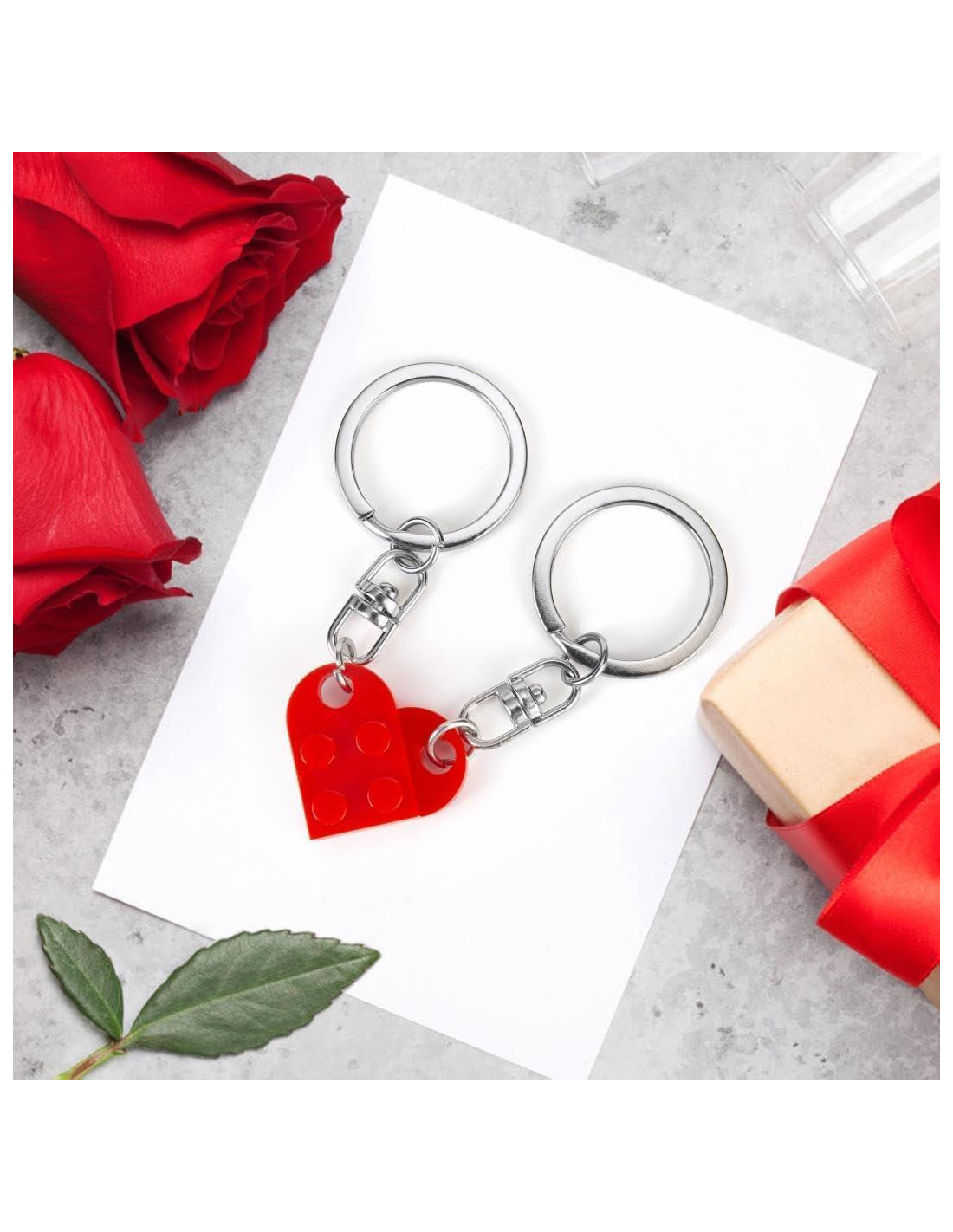 - Las cosas para parejas a juego consisten en dos llaveros unidos para formar un corazón rojo. Después de abrir, cada uno puede quedarse con la mitad del llavero. Es el regalo perfecto de Día de San Valentín para novios, novias y amigos cercanos.