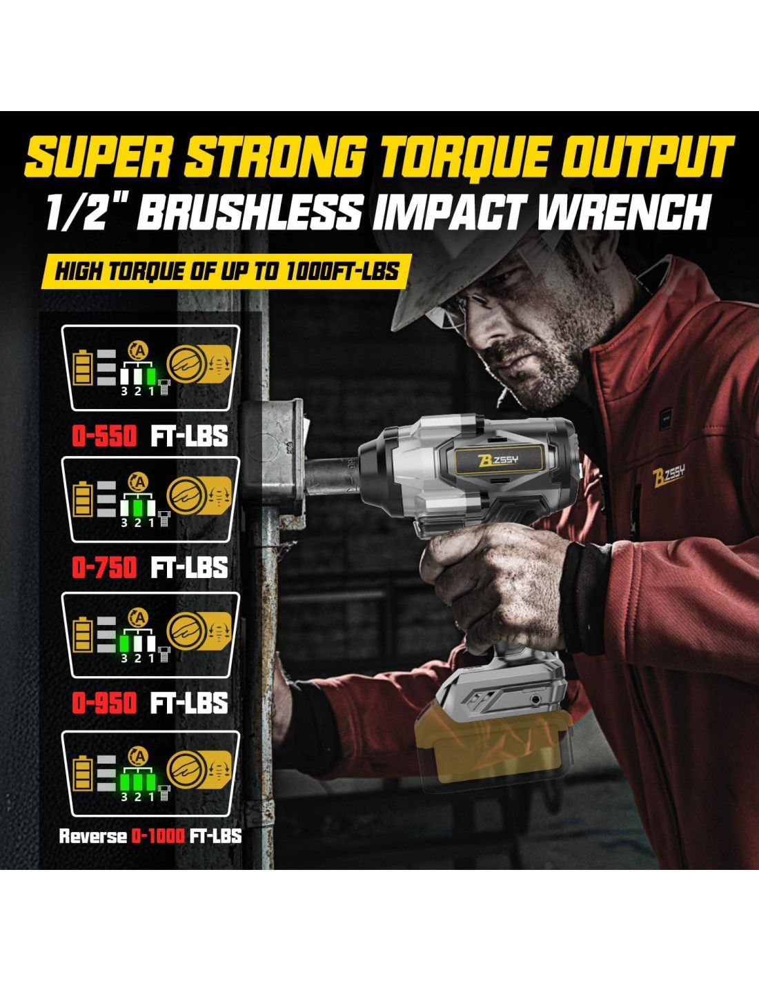 - Llave de impacto compatible con Dewalt: Llave de impacto inalámbrica B.ZSSY de 1/2 pulgada compatible con baterías Dewalt de 20V (batería no incluida), incluyendo DCB201 DCB203 DCB204 DCB205 DCB206 y más; Consejo: Para un rendimiento óptimo, se recomienda una batería de 4AH o superior; Tenga en cuenta que este conductor de llave de impacto no está clasificado para tuercas de vehículos pesados o camiones.