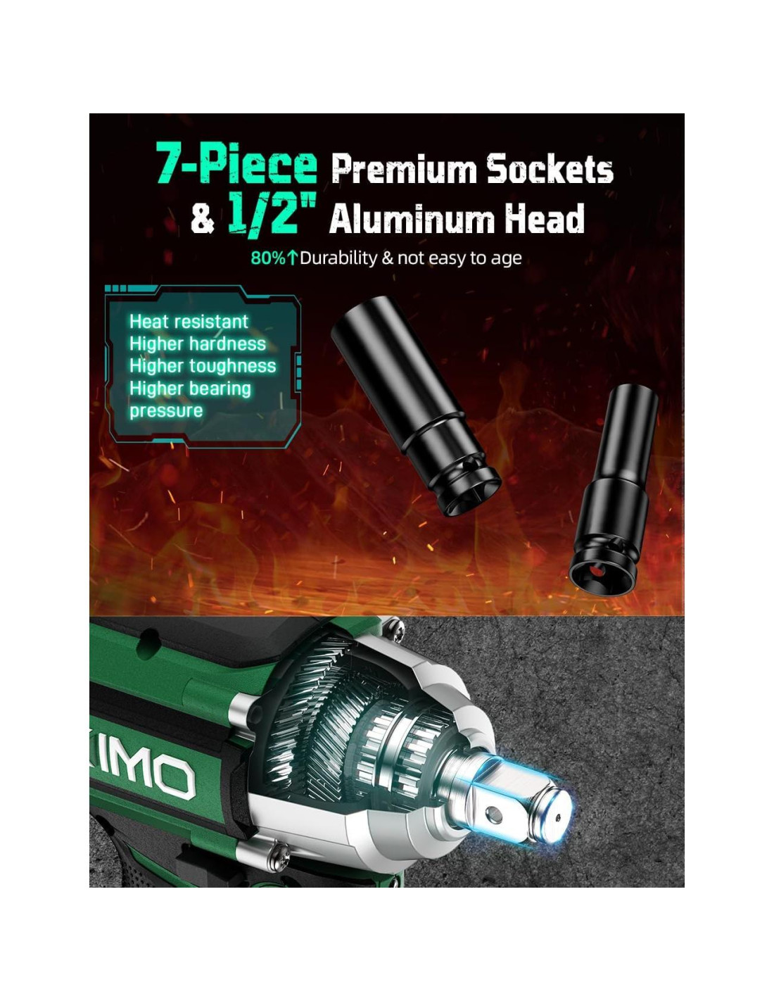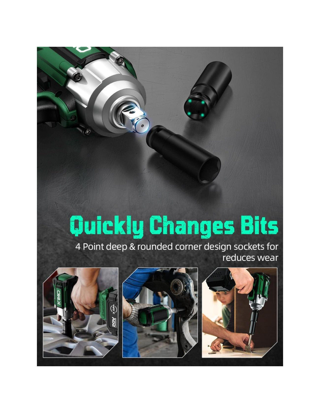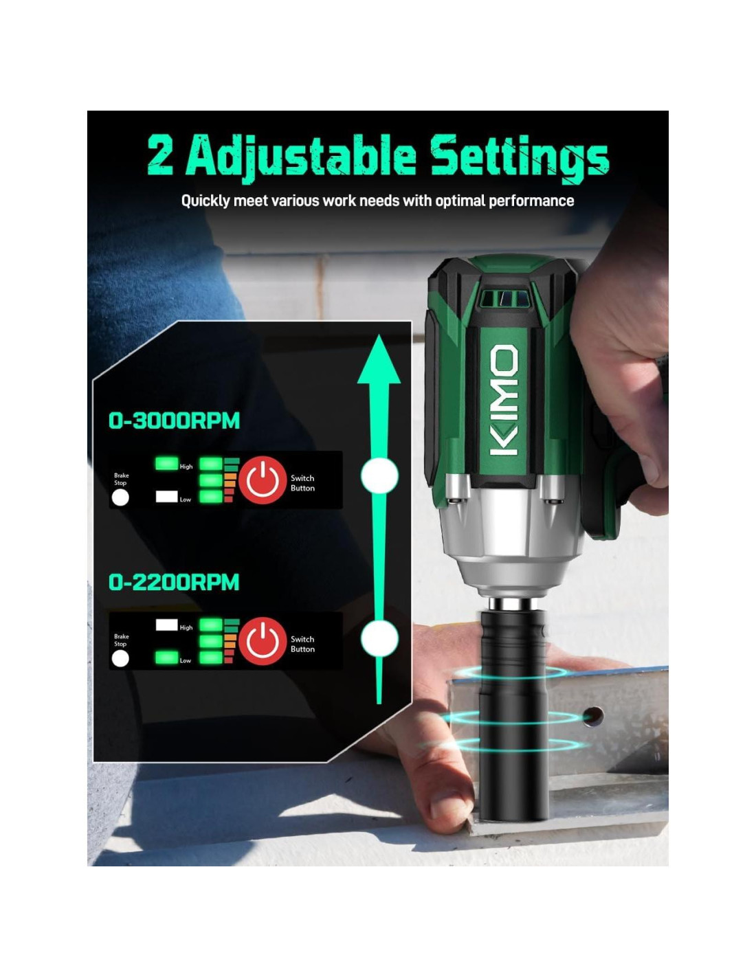 - [Ya sea que estés trabajando en reparación automotriz, construcción, fabricación o incluso proyectos de mejora del hogar, la naturaleza versátil de la llave de impacto KIMO de 1/2 brilla. Desde tornillos pequeños y delicados hasta tornillos más grandes y de alta carga, la pistola de impacto de batería de 1/2 pulgadas de alto par está equipada para manejar todos, proporcionando flexibilidad y conveniencia.
