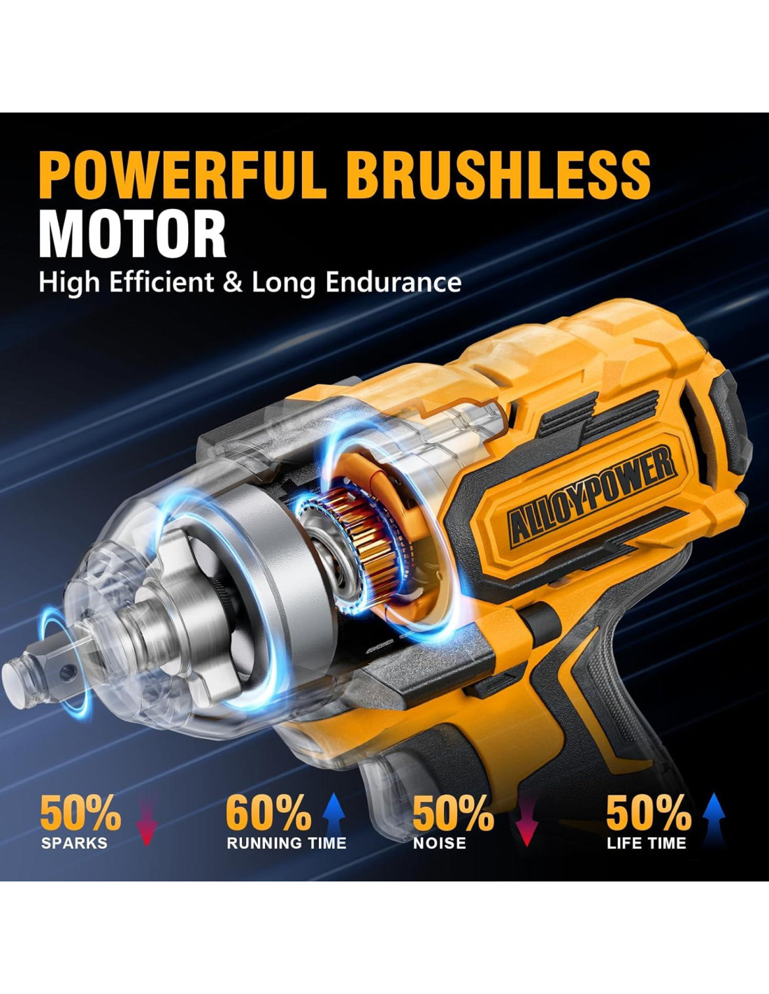 - Motor sin escobillas -- Eficiente y más silencioso, y sin chispas 900 pies-libras (1200N.m) llave de impacto inalámbrica tiene un potente y duradero. En comparación con los motores tradicionales, la llave de impacto funciona un 50% más tiempo, es más silenciosa, sin chispas y fácil de usar, convirtiéndola en la herramienta ideal en el trabajo. Aumenta la eficiencia en un 90% en comparación con las herramientas manuales, mientras reduce la fatiga del operador en un 80%. Ideal para trabajos pesados, esta herramienta ahorra más de 2 horas diarias en tareas industriales.