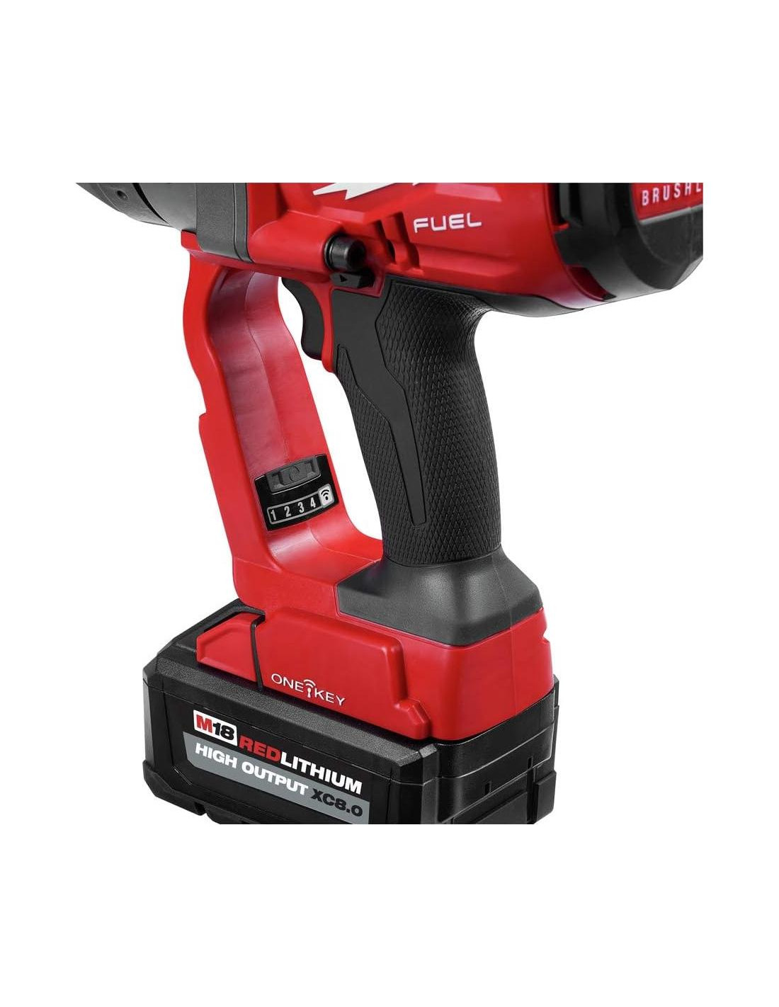 La llave de impacto de alto par Milwaukee M18 FUEL de 1 pulgada con ONE-KEY es la primera llave de impacto inalámbrica de 1 pulgada del mundo. El motor sin escobillas POWERSTATE ofrece hasta 1,800 pies-libra (2437.6 Nm) de par de aflojamiento y 1,500 pies-libra (2034.4 Nm) de par de apriete, lo que la convierte en la llave de impacto inalámbrica más potente y permite a los usuarios completar las aplicaciones más exigentes. Con solo 12.9 libras (5.8 kg) con batería, la herramienta es hasta 7 libras (3.2 kg) más ligera que las unidades con cable, proporcionando a los usuarios menos fatiga mientras realizan aplicaciones en altura más fácilmente en el lugar de trabajo. La llave de impacto alimentada por batería ofrece a los usuarios la conveniencia inalámbrica y elimina la necesidad de compresores, generadores, cables y mangueras. Esto reduce el costo de propiedad al disminuir los costos de energía y eliminar el mantenimiento rutinario de compresores y generadores. Sin cable ni manguera, los usuarios tienen mayor portabilidad y la capacidad de completar aplicaciones que no podían hacer con una unidad con cable o neumática. La inteligencia REDLINK PLUS asegura que los usuarios logren el máximo rendimiento y protege su llave de impacto de alto par contra sobrecargas, sobrecalentamiento y sobredescarga. El CONTROL DE CONDUCCIÓN de 4 modos proporciona a los usuarios un mayor control sobre la velocidad de salida y la potencia de esta poderosa llave de impacto de alto par. Además de la llave de impacto, este kit incluye 2 baterías M18 HIGH OUTPUT XC 8.0, un cargador rápido M18 y M12, un mango ajustable sin herramientas, un lazo para cordón y una bolsa de contratista.