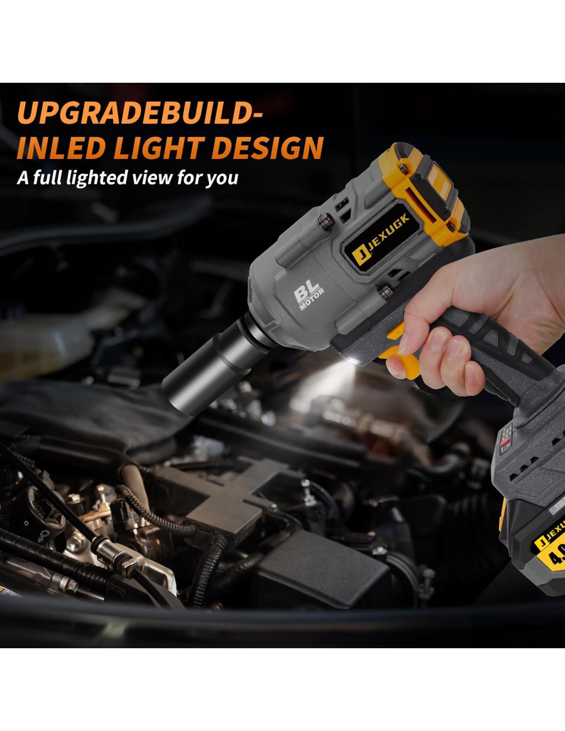 - LED Bright Beads - Las llaves de impacto JEXUGK están recién mejoradas con perlas LED, que son más brillantes que las antiguas y consumen menos energía, especialmente con los 10 segundos de brillo extendido. Cada vez que presiona el gatillo, la luz LED se enciende y se apaga después de 10 segundos, lo que no solo ilumina el área de trabajo oscura, sino que también ayuda a trabajar con precisión