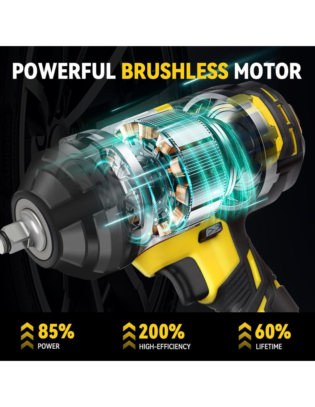 - 1300 N.m Impacto eléctrico de alta resistencia Con un impresionante par de ruptura de 1300 Nm, esta llave de impacto inalámbrica de 1/2 pulgada cuenta con un potente motor sin escobillas de 1200W de alta eficiencia. Destaca en el ajuste y aflojado sin esfuerzo de tuercas y tornillos.