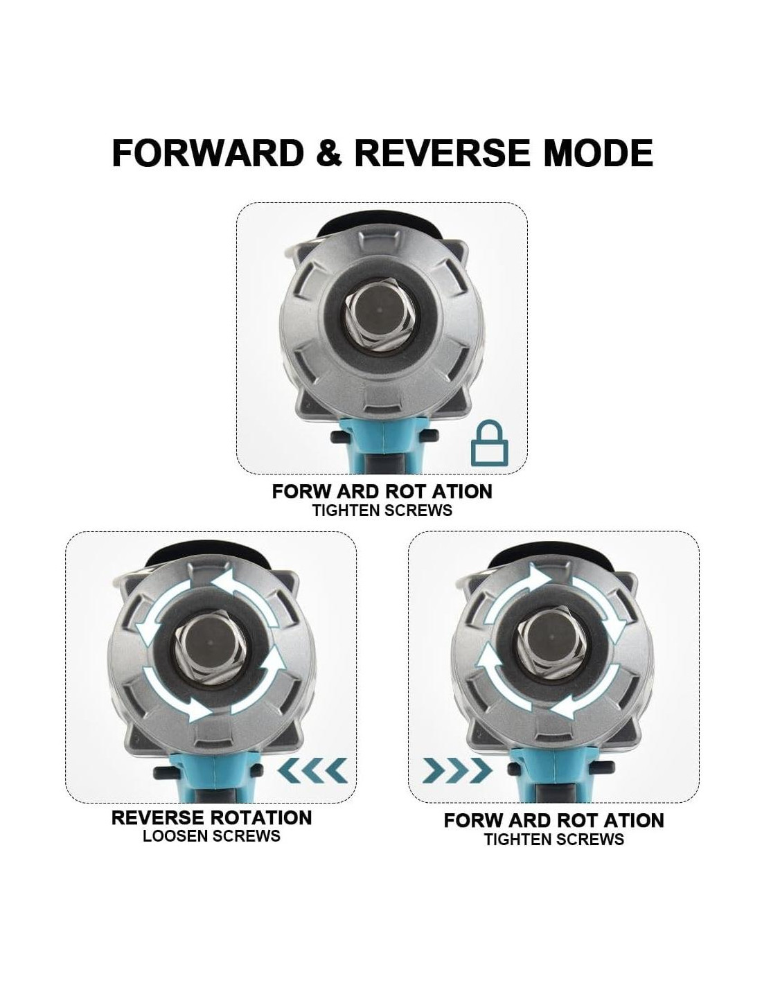 - [Características Amigables para el Usuario] Con un peso de solo 2.98 kg (batería excluida), esta llave de impacto de alto par de 3/4" está diseñada para su comodidad. Cuenta con un agarre ergonómico y ajuste de velocidad sin escalas, permitiendo una transición fluida entre altas, medias y bajas velocidades. Su función única de auto-detención en reversa activa el freno cuando se afloja una tuerca, evitando que se salga volando y mejorando la seguridad.