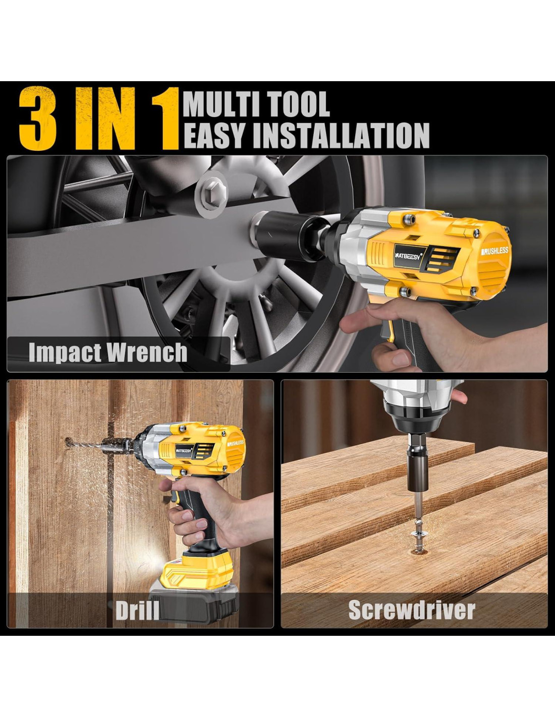 Descubre lo último en par y versatilidad con la llave de impacto inalámbrica NATBEESY de 1/2 pulgada. Diseñada para profesionales y entusiastas del bricolaje, esta herramienta combina un rendimiento robusto con un diseño ergonómico para abordar una amplia gama de tareas sin esfuerzo.