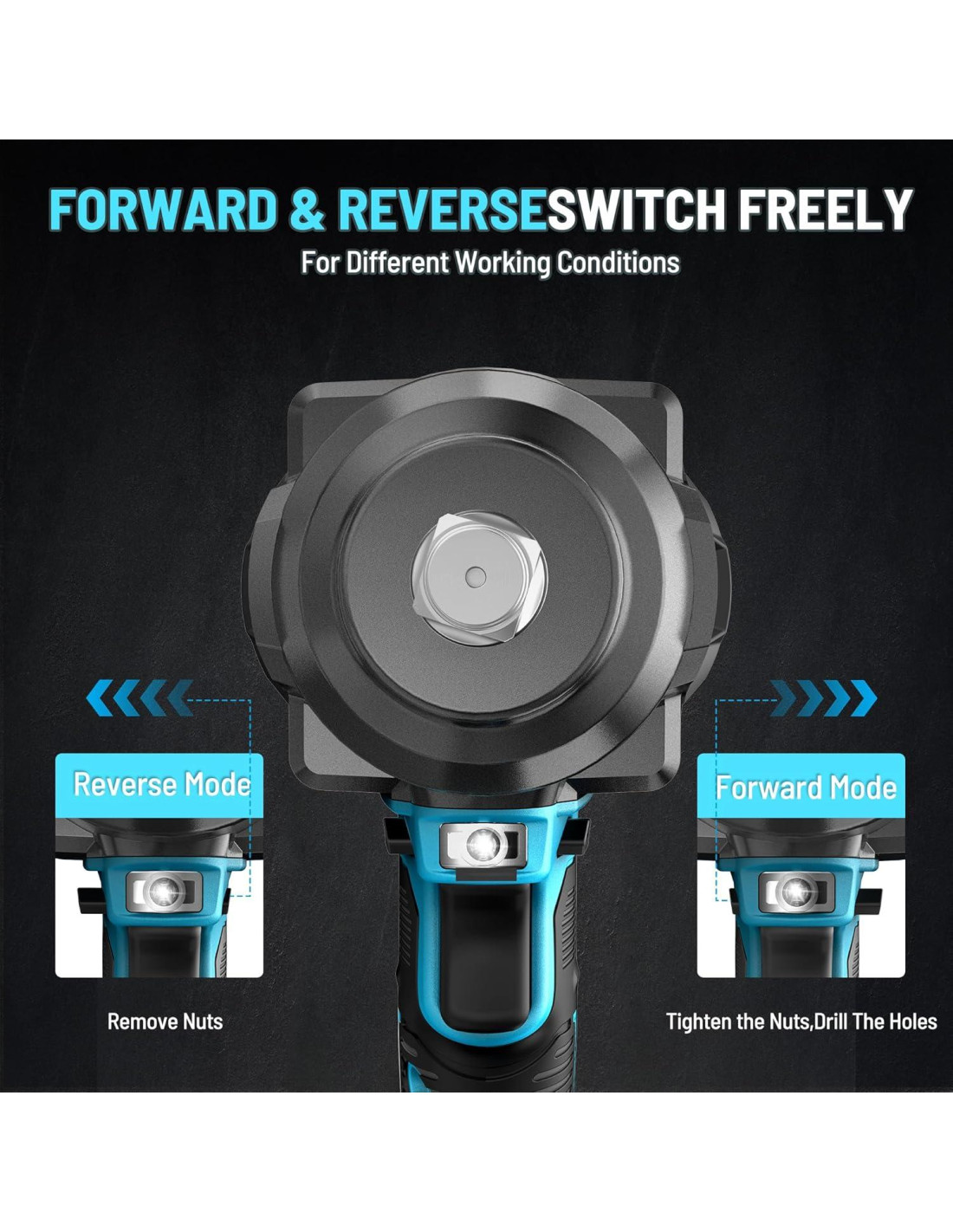 - [3 Modos de Velocidad y 2 Direcciones] 3 velocidades ajustables (hasta 3500RPM) permiten requisitos de trabajo versátiles, con fácil operación controlando la presión en el gatillo. Además, los modos de avance/reversa y protección de bloqueo hacen que apretar/aflojar tornillos sea sin esfuerzo.