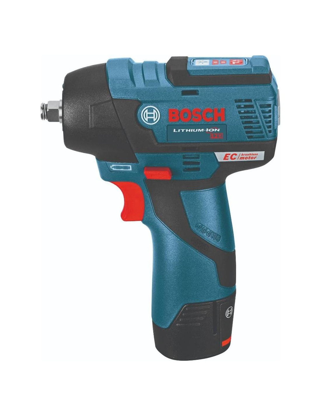 El Bosch PS82-02 12 V Max EC Sin Escobillas 3/8 Pulg. Juego de Llave de Impacto cuenta con una llave de impacto inalámbrica de 12 V Max, que se puede utilizar para muchas tareas de conducción en un lugar de trabajo. Esta llave de impacto de 3/8 Pulg. tiene una longitud de cabeza de 5.5 Pulg. (13,97 cm) y pesa solo 1.6 Lbs. (0,73 kg), pero entrega 85 Pies-Libra de torque máximo, ideal para tareas de conducción repetitivas. Está diseñada con el sistema de control de rendimiento de Bosch, y tiene dos configuraciones de velocidad, una para alta velocidad y alto torque y otra para baja velocidad y bajo torque. La llave cuenta con un motor EC Sin Escobillas sin mantenimiento, una caja de engranajes completamente metálica mejorada y un sistema de impacto optimizado, que juntos permiten una eficiencia inigualable, gran tiempo de funcionamiento y mayor vida útil. Entrega 0-1,200 y 0-2,600 RPM y calificaciones de impacto sin carga por minuto de 0-2,700 y 0-3,100. Esta llave tiene un yunque de cuadrado de 3/8 Pulg. y un anillo de luz de tres LED. Este kit incluye dos baterías de 12 V Max de 2 Ah y un cargador de 12 V Max.