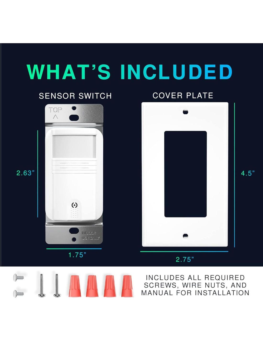 - Totalmente Certificado y Cumplidor: Certificado UL, listado por la FCC y Cumplidor con el Título 24 de California; Incluye 2 interruptores de luz con sensor de movimiento de 3 vías en la pared. La instalación de este interruptor de luz con sensor de movimiento de 3 vías requiere un cable neutro, todos los cables necesarios incluidos