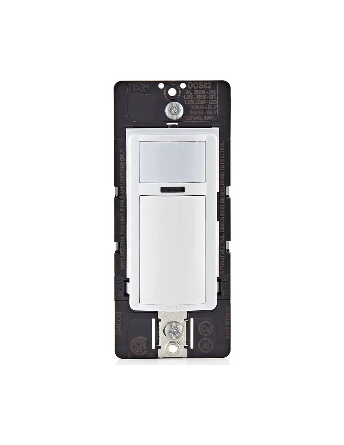 - Componentes incluidos: Un Interruptor de Sensor de Movimiento Leviton DOS02-LW, Blanco
