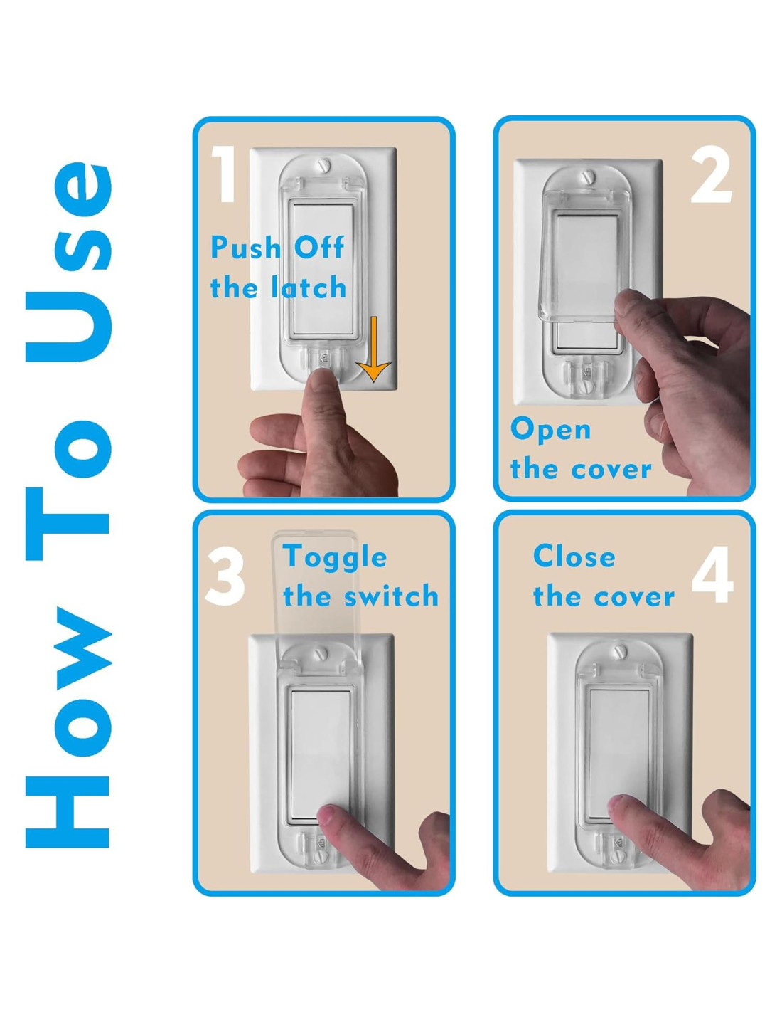 - La cubierta de interruptor de luz se adapta a interruptores de luz de rocker estándar. La cubierta protectora clara se mezcla con cualquier decoración del hogar o placa de pared para que nadie note que está allí.