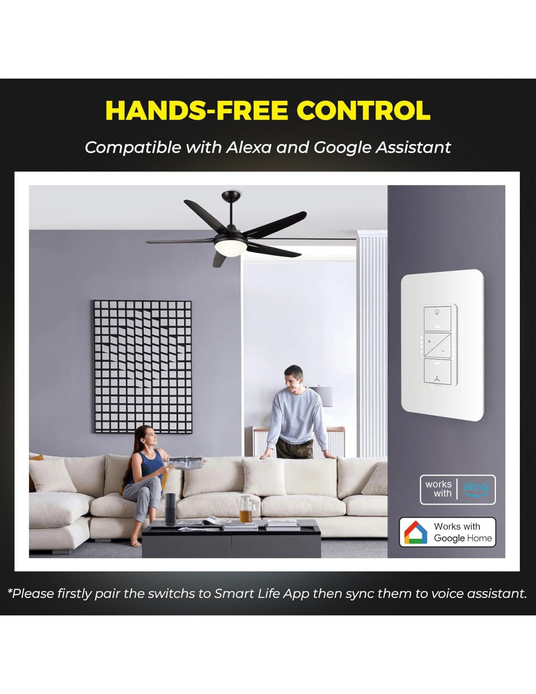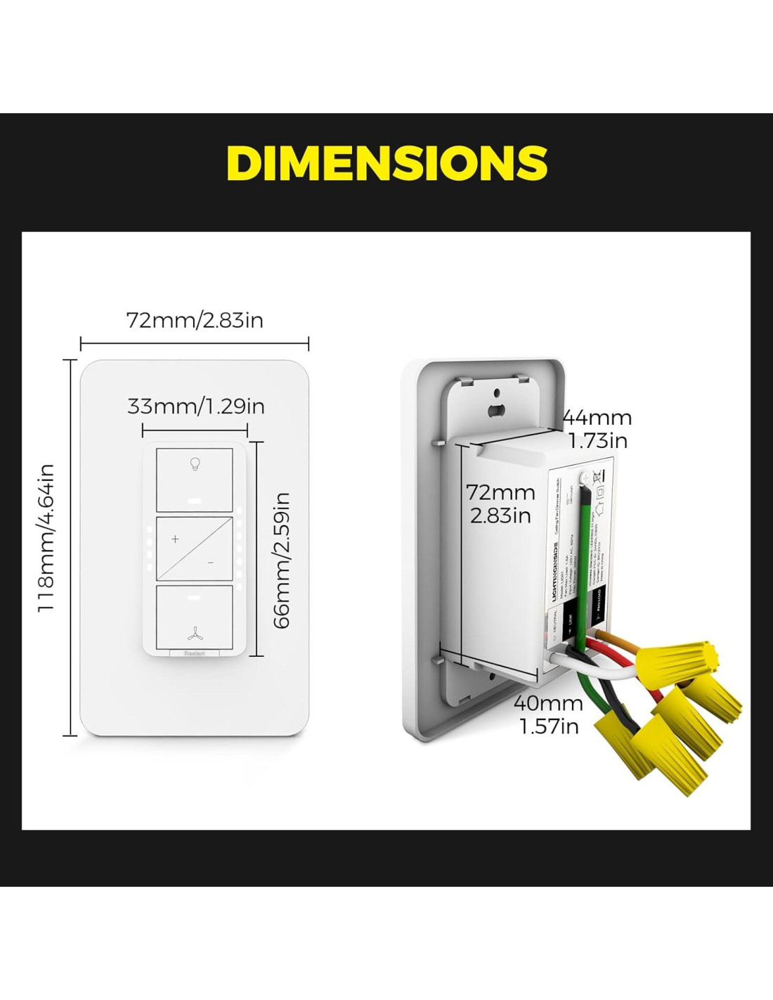 - [Programación y Temporizador] Cree un horario o temporizador para que este regulador de interruptor inteligente encienda/apague automáticamente su ventilador de techo y luz de ventilador o cambie a un brillo y velocidad de ventilador específicos en un tiempo preestablecido. Este interruptor inteligente hace que su hogar sea más inteligente y conveniente.