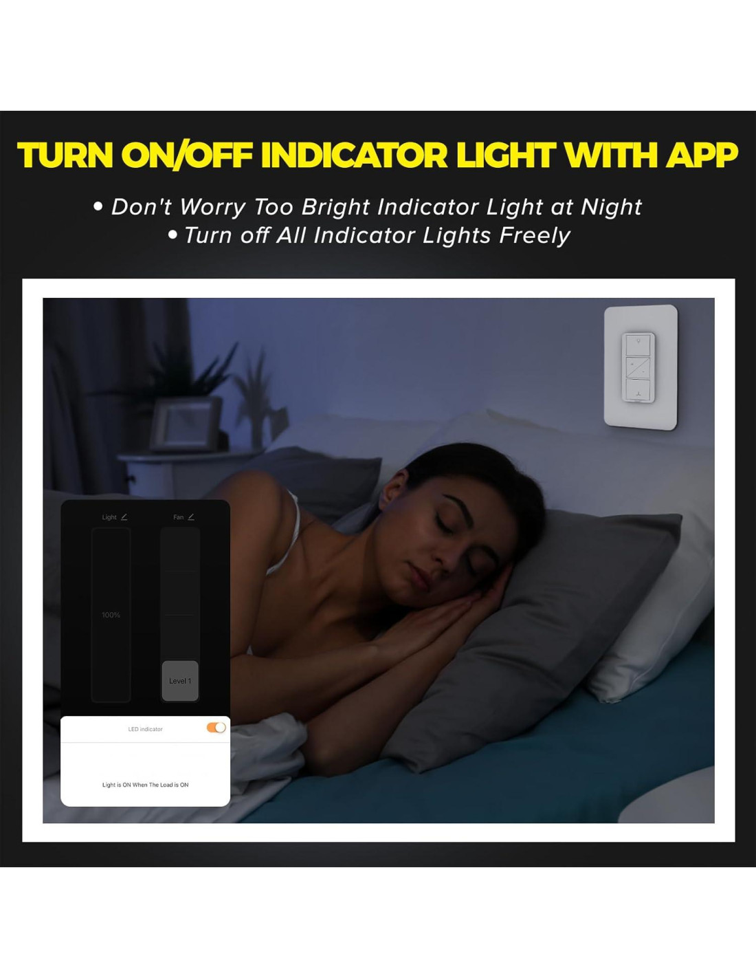 - [Control Inteligente e Indicadores Independientes] Este interruptor combinado inteligente está diseñado para ajustar la velocidad del ventilador y regular sus luces con un teléfono inteligente usando la aplicación Vida Inteligente. Este interruptor inteligente de ventilador y luz 2 en 1 soporta 4 niveles de velocidad del ventilador y un rango de regulación suave y amplio de 1-14 niveles (10%-100%). Los niveles de ventilador y brillo en tiempo real se muestran de forma independiente en indicadores separados.