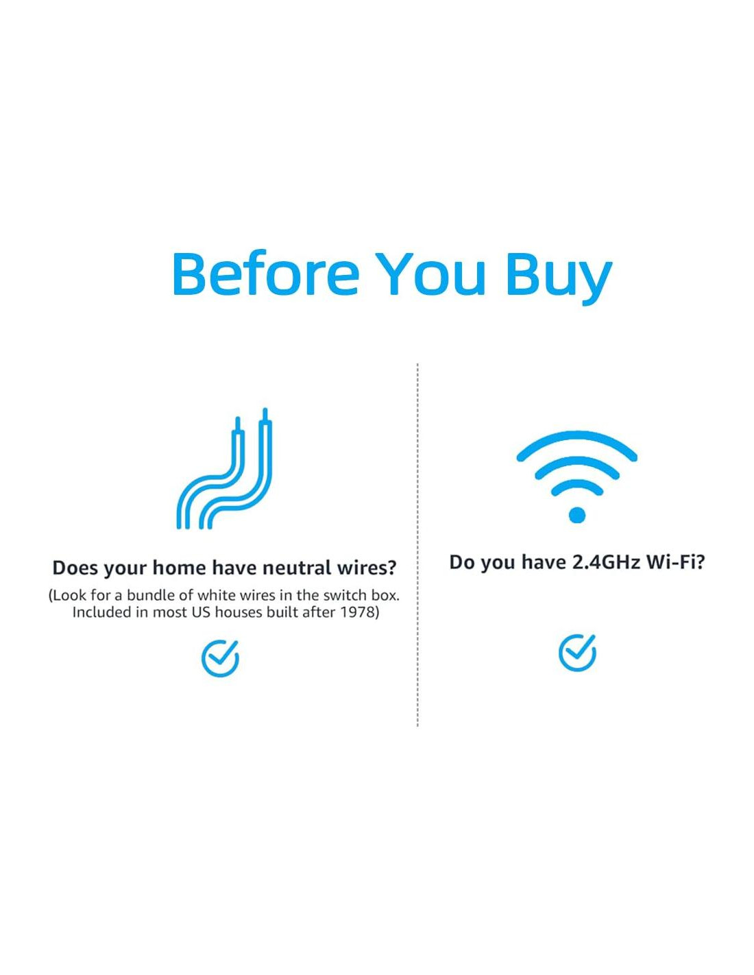 - Instalación sin complicaciones y segura: Instala fácilmente los interruptores con instrucciones claras y paso a paso. Viene con placas de pared de tamaño estándar y sin tornillos. Requiere un cable neutro, pero no se necesita un hub. Solo funciona con Wi-Fi de 2.4GHz. Potencia máxima: 1250W. Corriente de salida: 10A. Certificado por la FCC para seguridad.