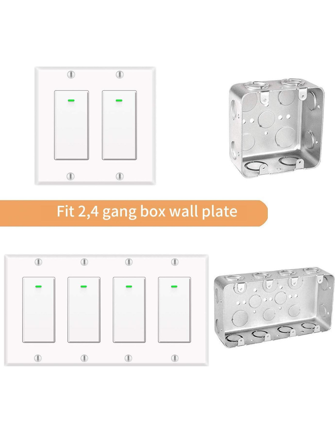 - CONFIGURACIÓN FÁCIL No hay manual de instalación difícil ni configuración. Solo para instalación de un solo polo. (no 3 vías). Adecuado para caja de interruptor de tipo 1/2/3/4, NOTA: SE NECESITA CABLE NEUTRO. El interruptor de luz inteligente funciona solo con WiFi de 2.4G, no soporta WiFi de 5G, sin hub requerido.