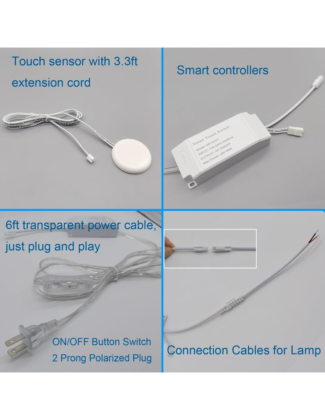 - Instalación Fácil y Oculta: Solo usa la cinta adhesiva de doble cara incluida con el regulador táctil para adjuntar el interruptor a la parte posterior del panel, y luego usa los clips de cableado para conectar a la luz, y luego enchufa la alimentación. sin soldadura.