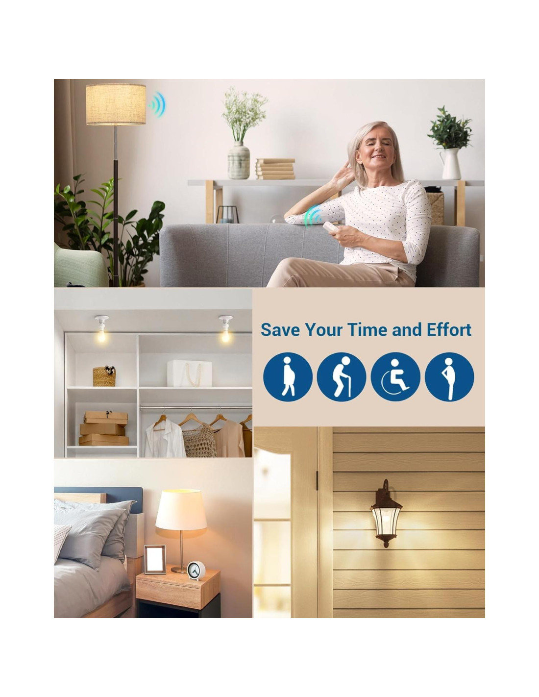 - [Controla Tus Luces Fácilmente] Nuestra toma de bombilla viene con un control remoto de llavero, lo que te permite encender o apagar tus luces sin esfuerzo desde la comodidad de tu cama, sofá o puerta, sin levantarte o buscar en la oscuridad; perfecto para ancianos, niños y cualquier persona con problemas de movilidad, haciendo tu vida más conveniente